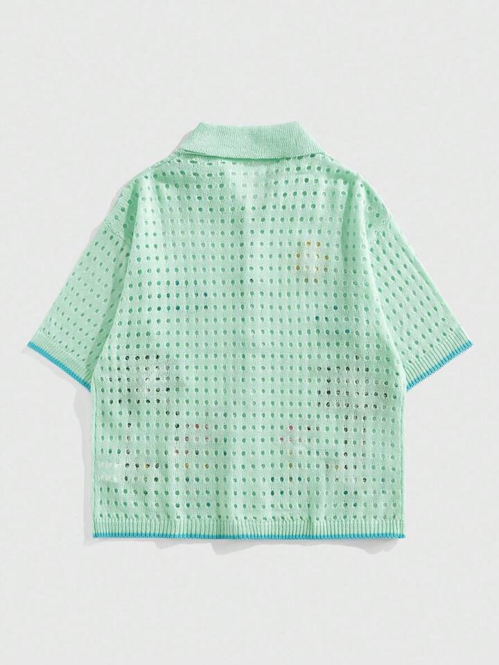 Street Life Men's Summer Vacation Beach Coconut Tree Embroidered Hollow Out Knit Sweater