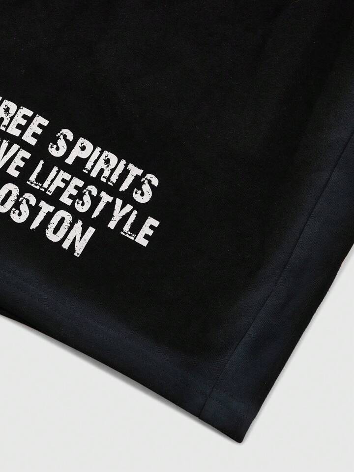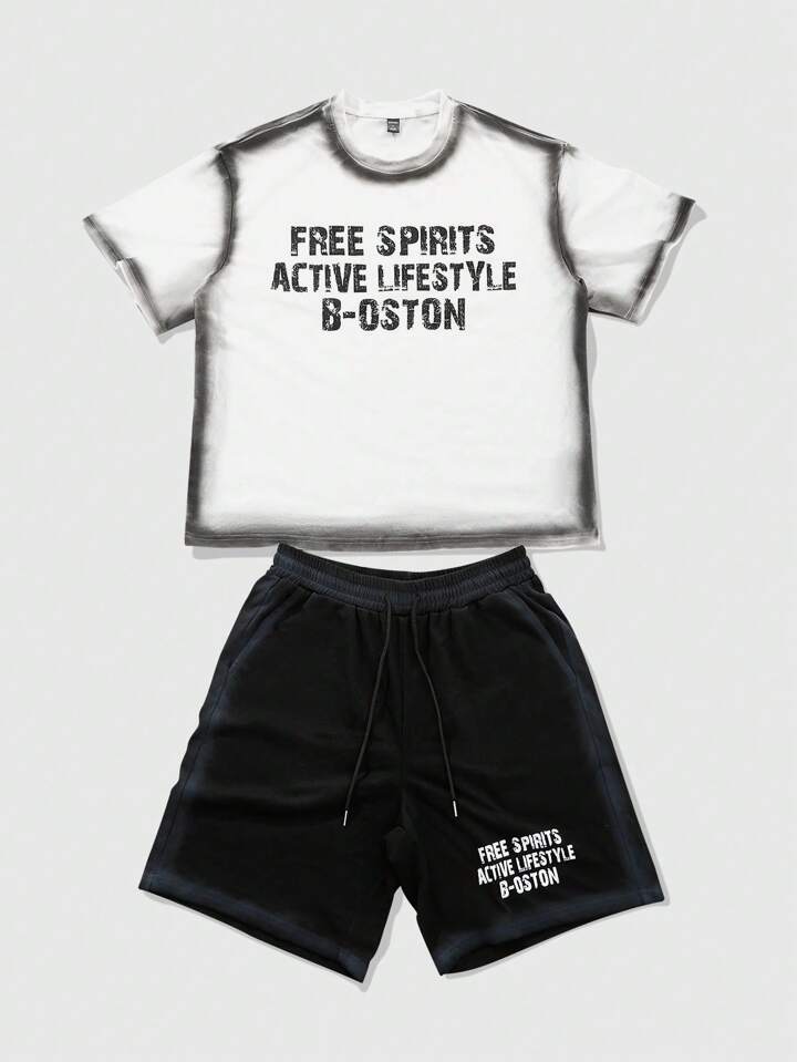 Street Life Men's T-Shirt Outfit, New Summer Design Vintage Lace Letter Patchwork Print Shorts.
