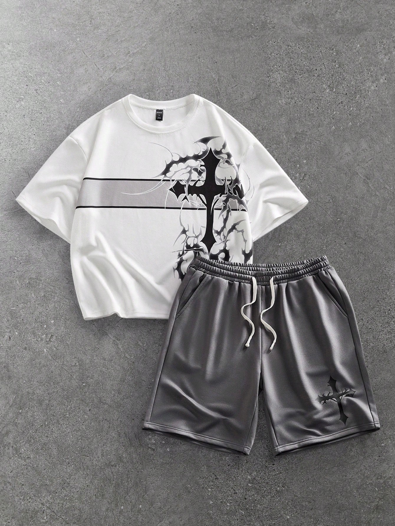 Street Life Men's Thorn Cross Graphic T-Shirt And Drawstring Waist Shorts Set