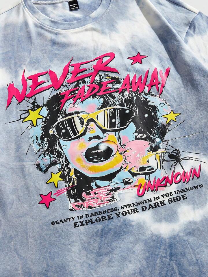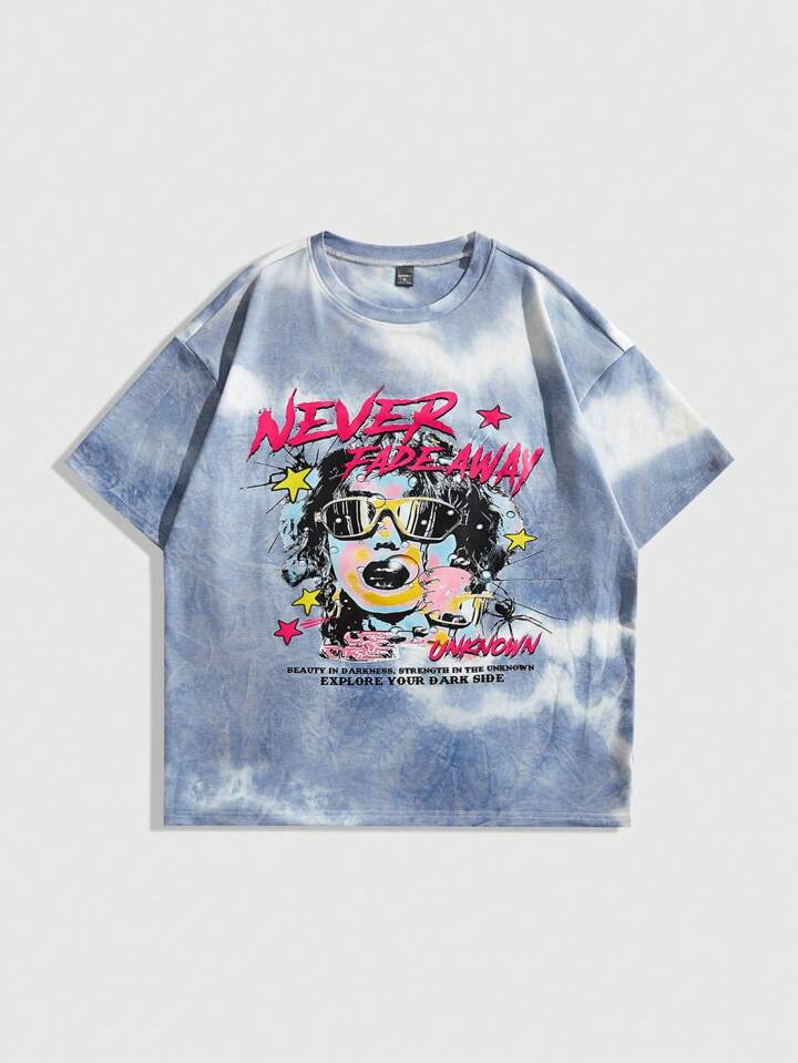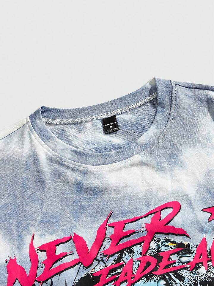 Street Life Men's Tie-Dye Character Slogan Print T-Shirt And Shorts Set