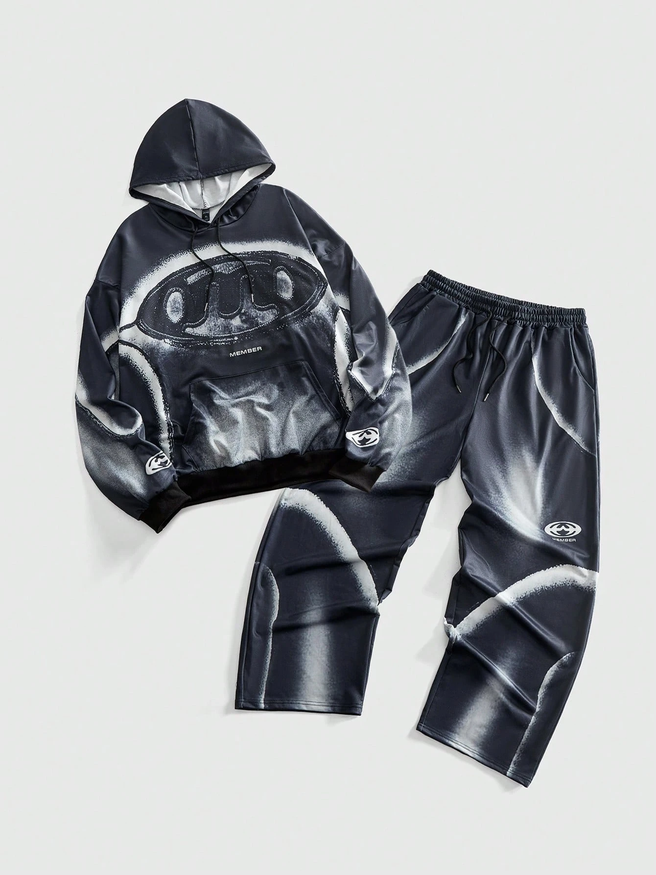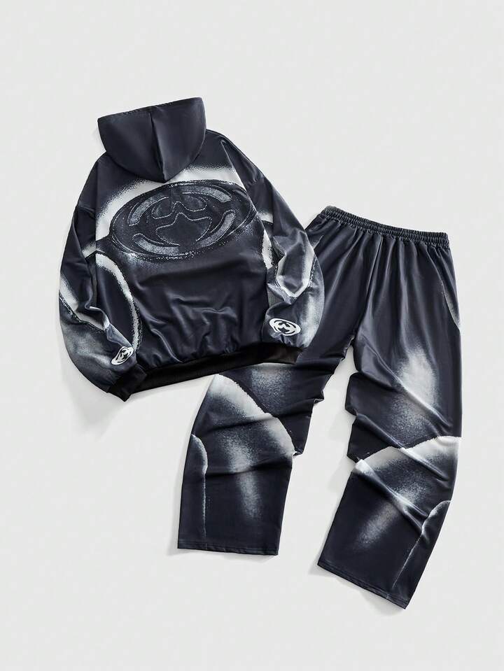 Street Life Men's Tie-Dye Print Drawstring Hooded Sweatshirt And Sweatpants Casual Suit