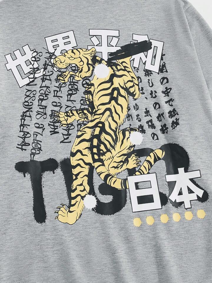 Street Life Men's Tiger And Letter Print Round Neck Sweatshirt
