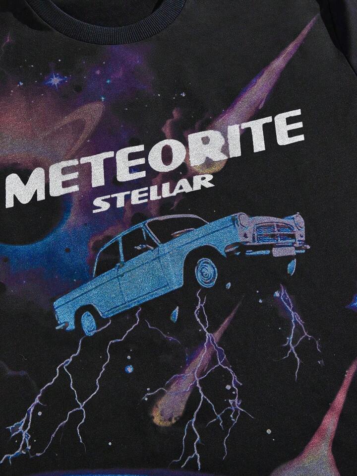 Street Life Men's Vintage Casual Universe & Car Printed T-Shirt, Summer