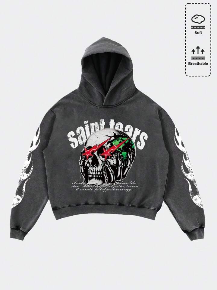 Street Life Men's Washed Short Cropped Pullover Sweatshirt, Streetwear Style