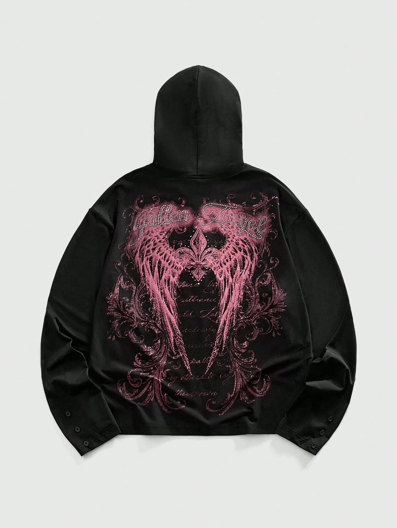Street Life Men's Wing & Letter Rhinestone Button Casual Long Sleeve Hoodie