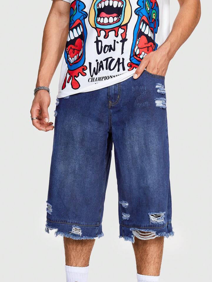 Street Life Men's Zipper Fly Distressed Frayed Edge Jeans