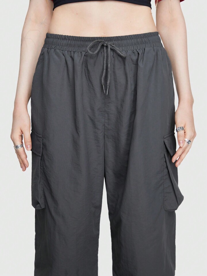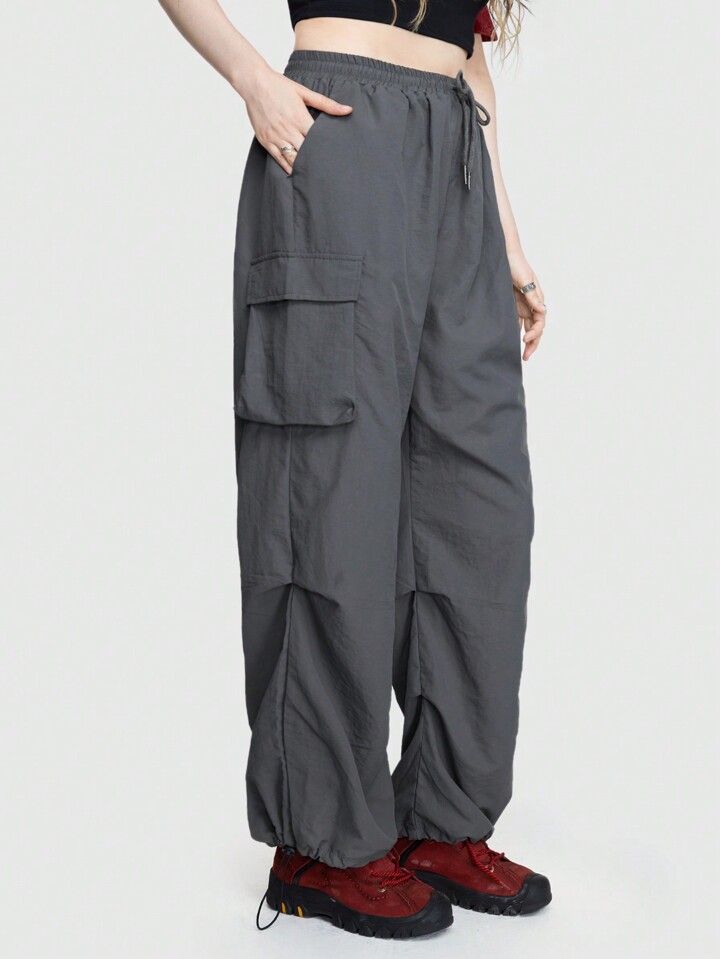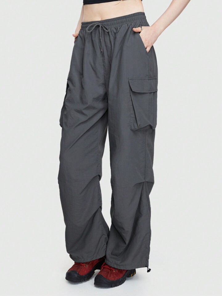 Street Life Outdoor Sports Style Loose Straight Pants With Adjustable Parachute Ankles