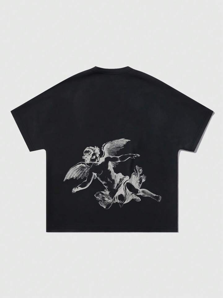 Street Life Plus Size Women Vintage Angel Graphic Short Sleeve T-Shirt, Suitable For Everyday Wear, Spring/Summer