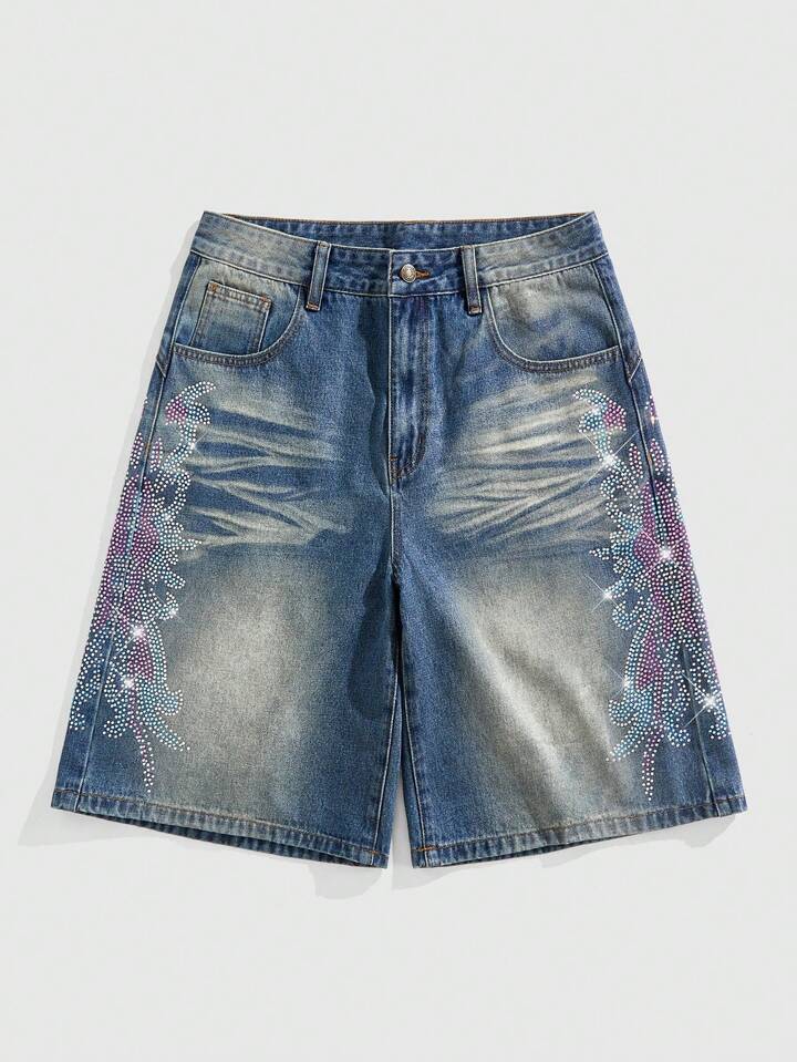 Street Life Retro High Street Men's Rhinestone Embellished Denim Shorts