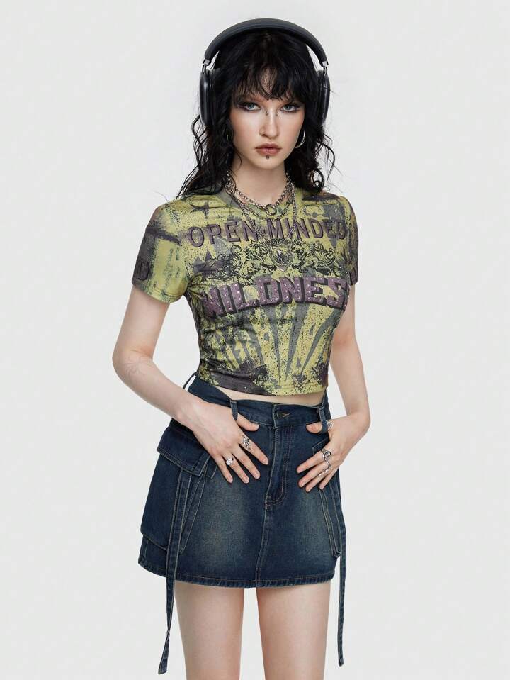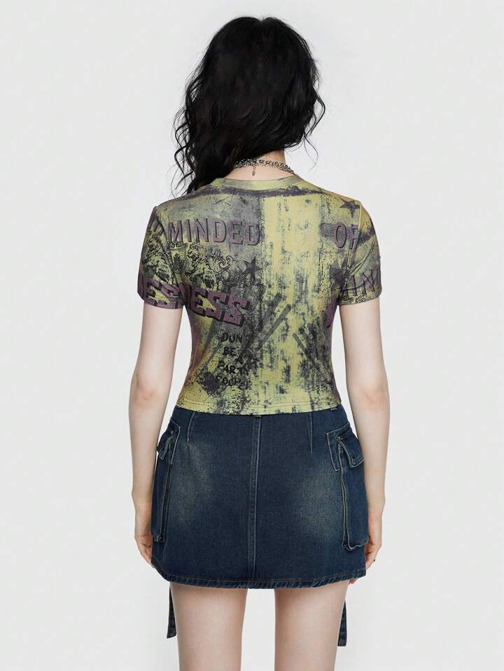 Street Life Retro Street Style Ink-splattered Printed Short Sleeve T-shirt