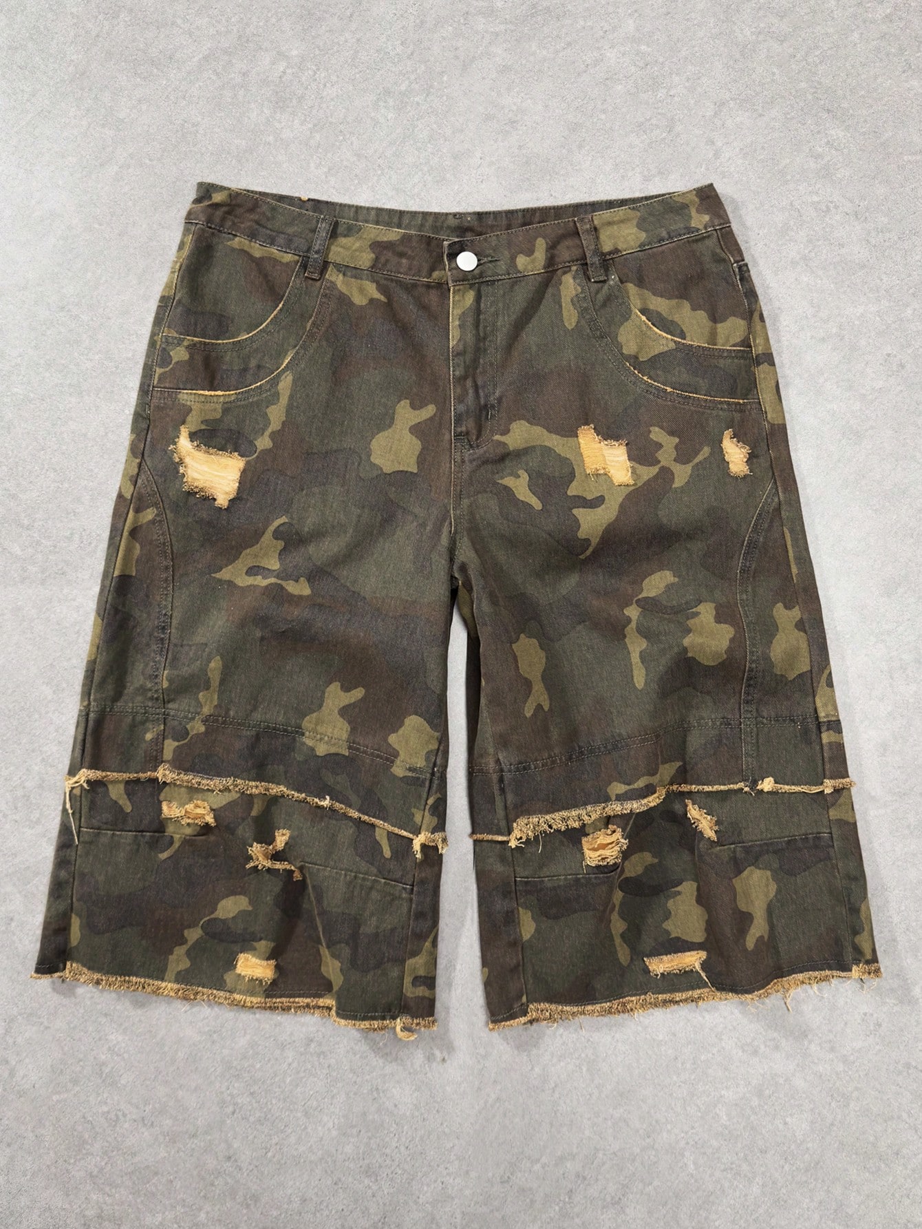 Street Life Spring/Summer Casual Graphic Men'S Camouflage Print Pocket Distressed Hem Casual Jeans