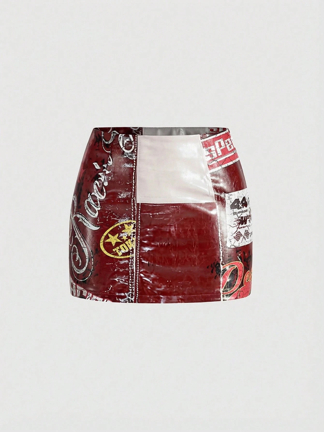 Street Life SummergraphicWomen's PU Patchwork Distressed Print Motorcycle Super Low Waist Sexy Bodycon Mini Skirt