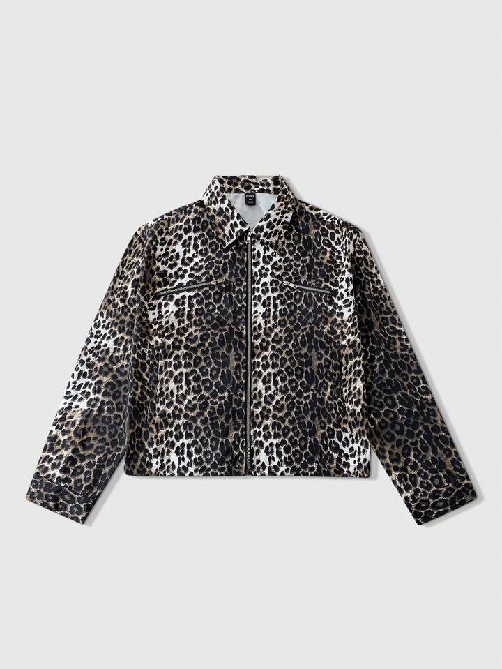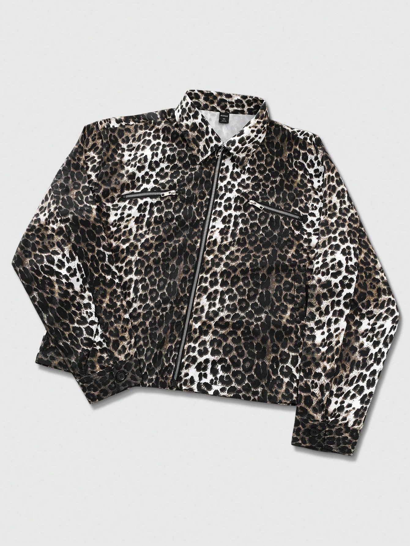 Street Life Unisex Street Style Leopard Print Textured Jacket, Grunge, Fall