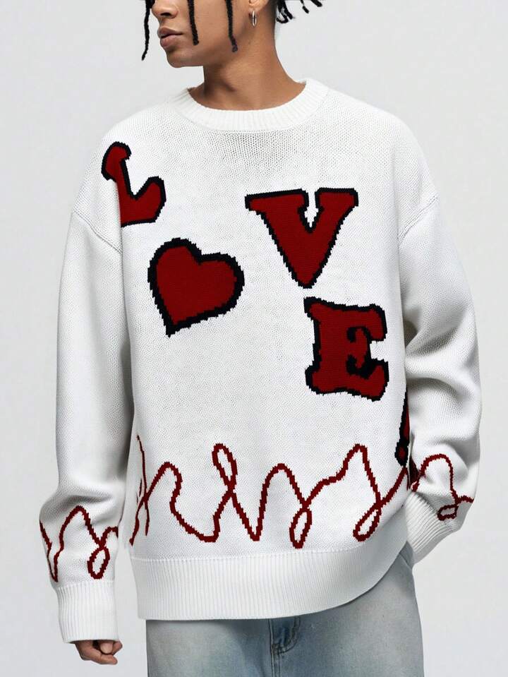 Street Life Valentine/Love/Couples/Heart/XOXO/Kisses/Hugs And Kisses/Be Mine/Babe/Baby/Kiss/Lip/Heart/Cupid/Angel/Rose/Smile/Butterfly/Cherry/Strawberry/3D Rose/Flower/Bow Print Unisex Pullover Sweater, Casual For Valentine's Day