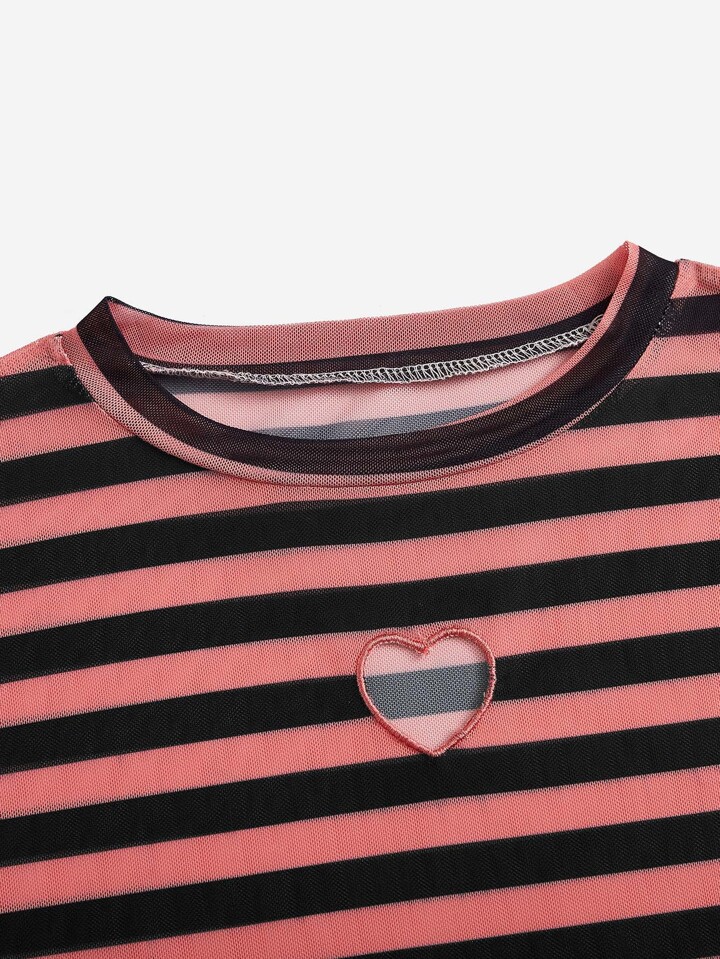 Striped Print Lettuce Trim Crop Top