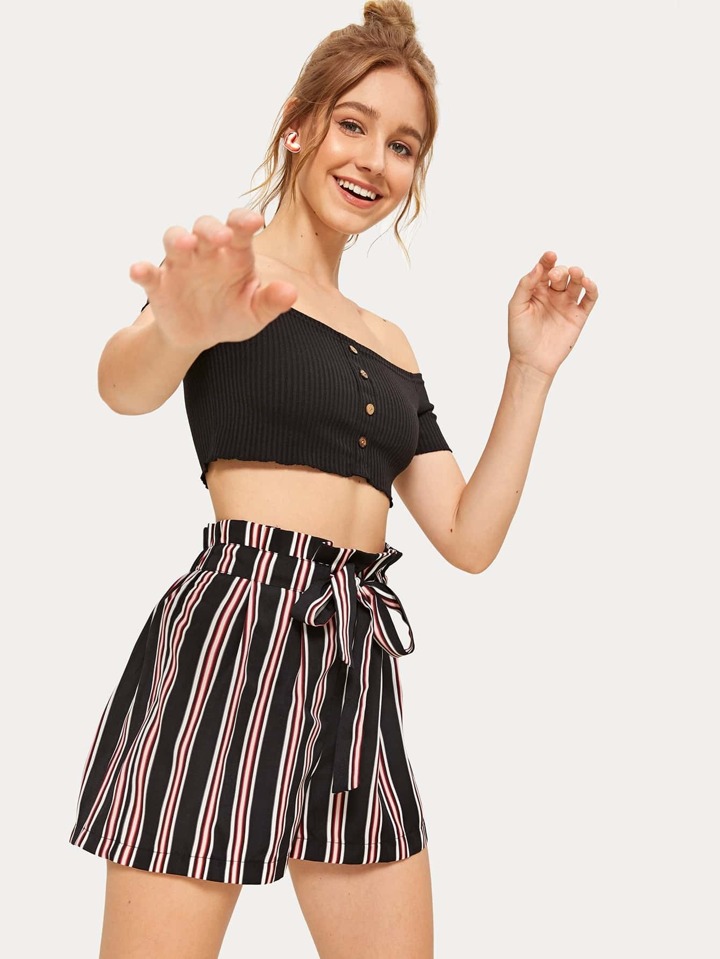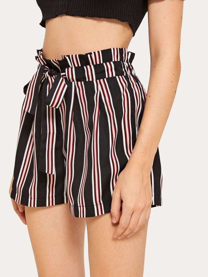 Striped Tie Front Paperbag Shorts