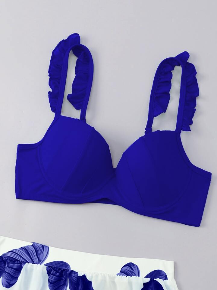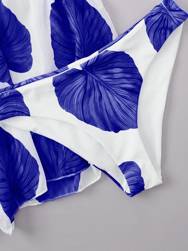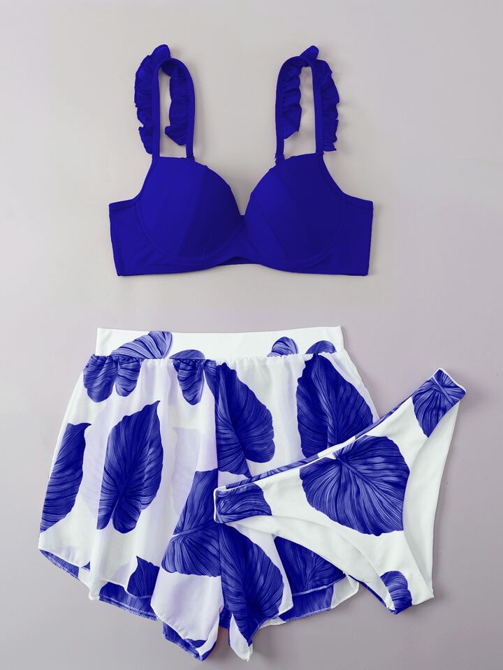 Summer Beach 3packs Leaf Print Push Up Bikini & Cover Up Shorts