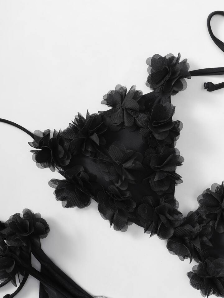 Summer Beach Appliques Halter Triangle Tie Side Bikini Set