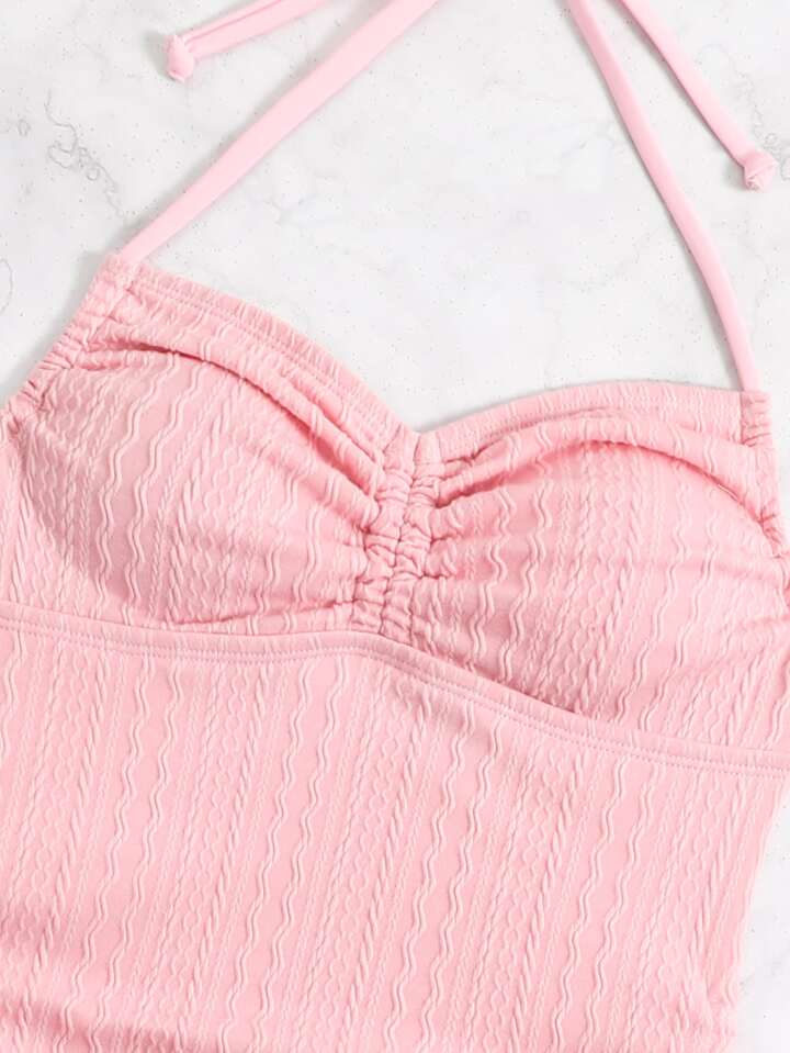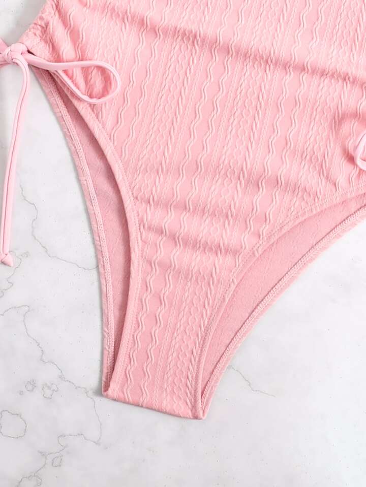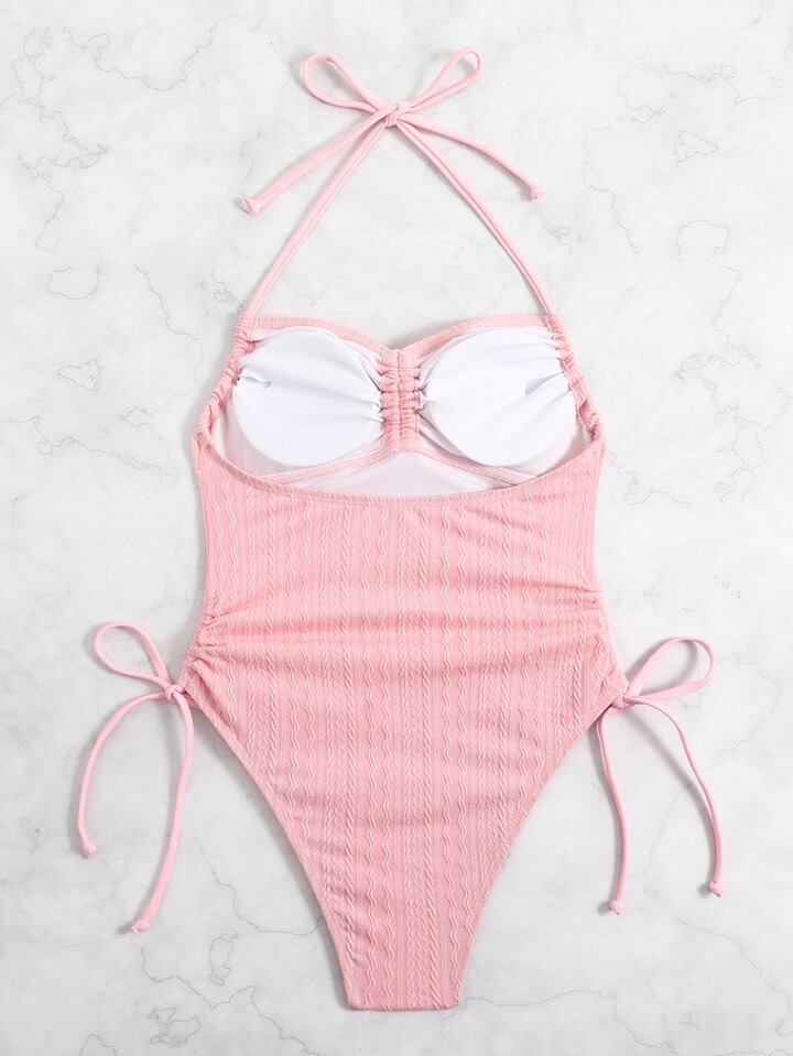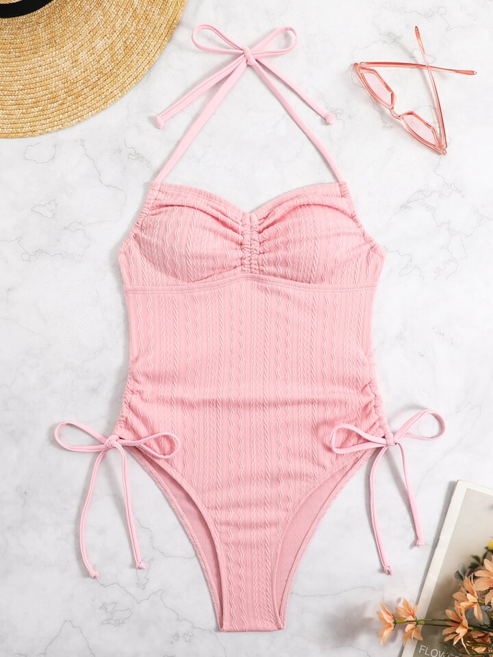 Summer Beach Drawstring Side Halter One Piece Swimsuit