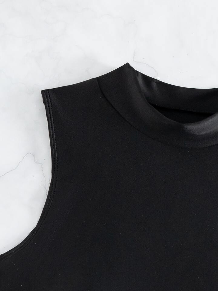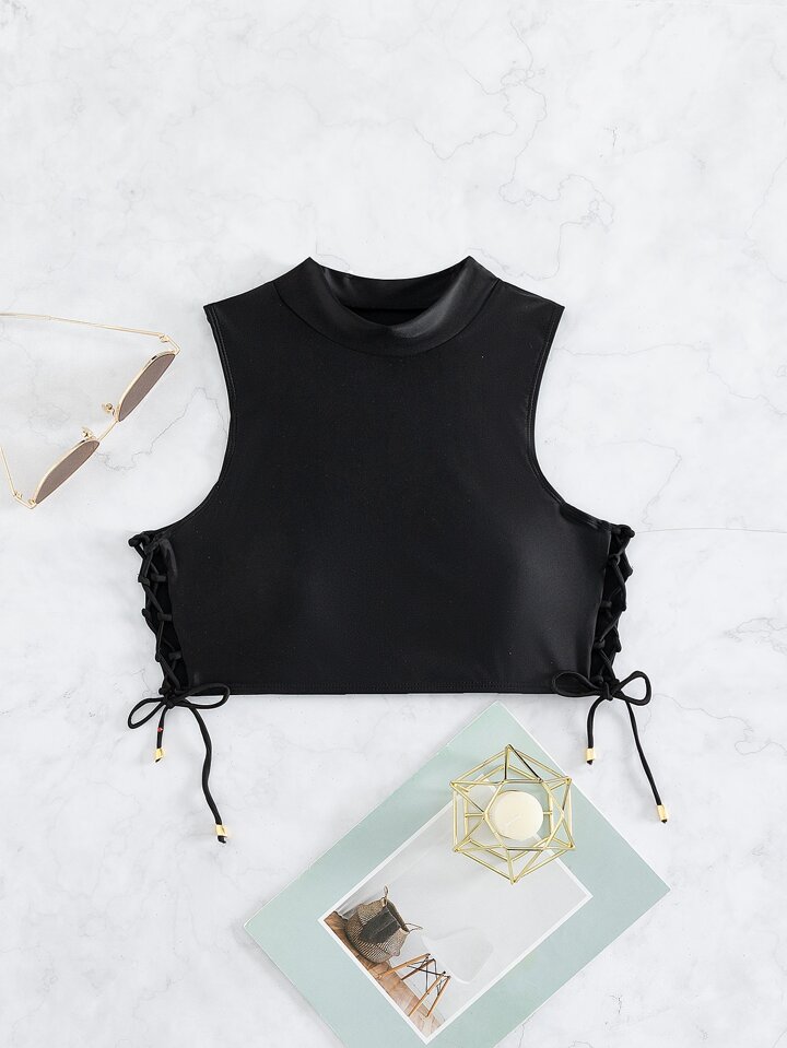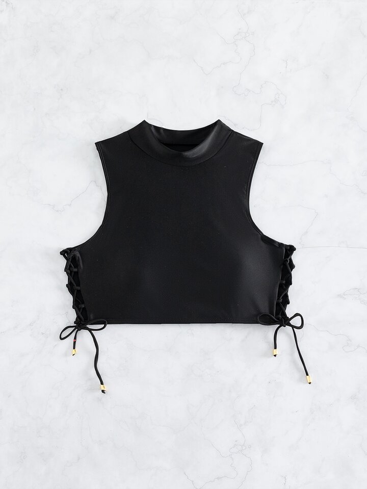 Summer Beach Lace Up Side Mock Neck Bikini Top