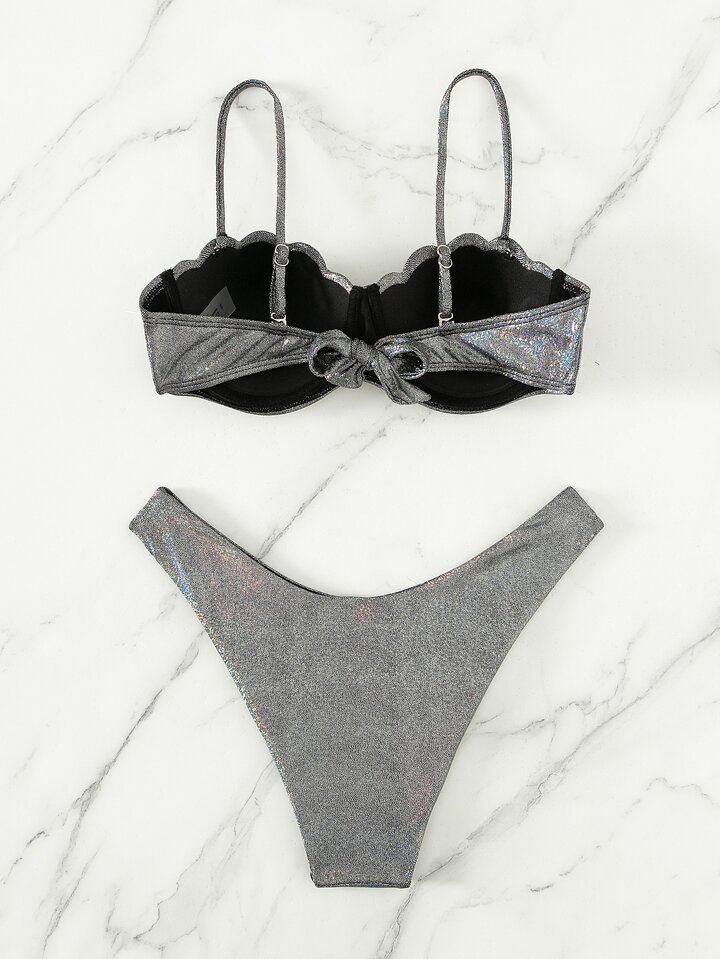 Summer Beach Metallic Bikini Set Scallop Trim Push Up Top & Cheeky 2 Pieces Bikini