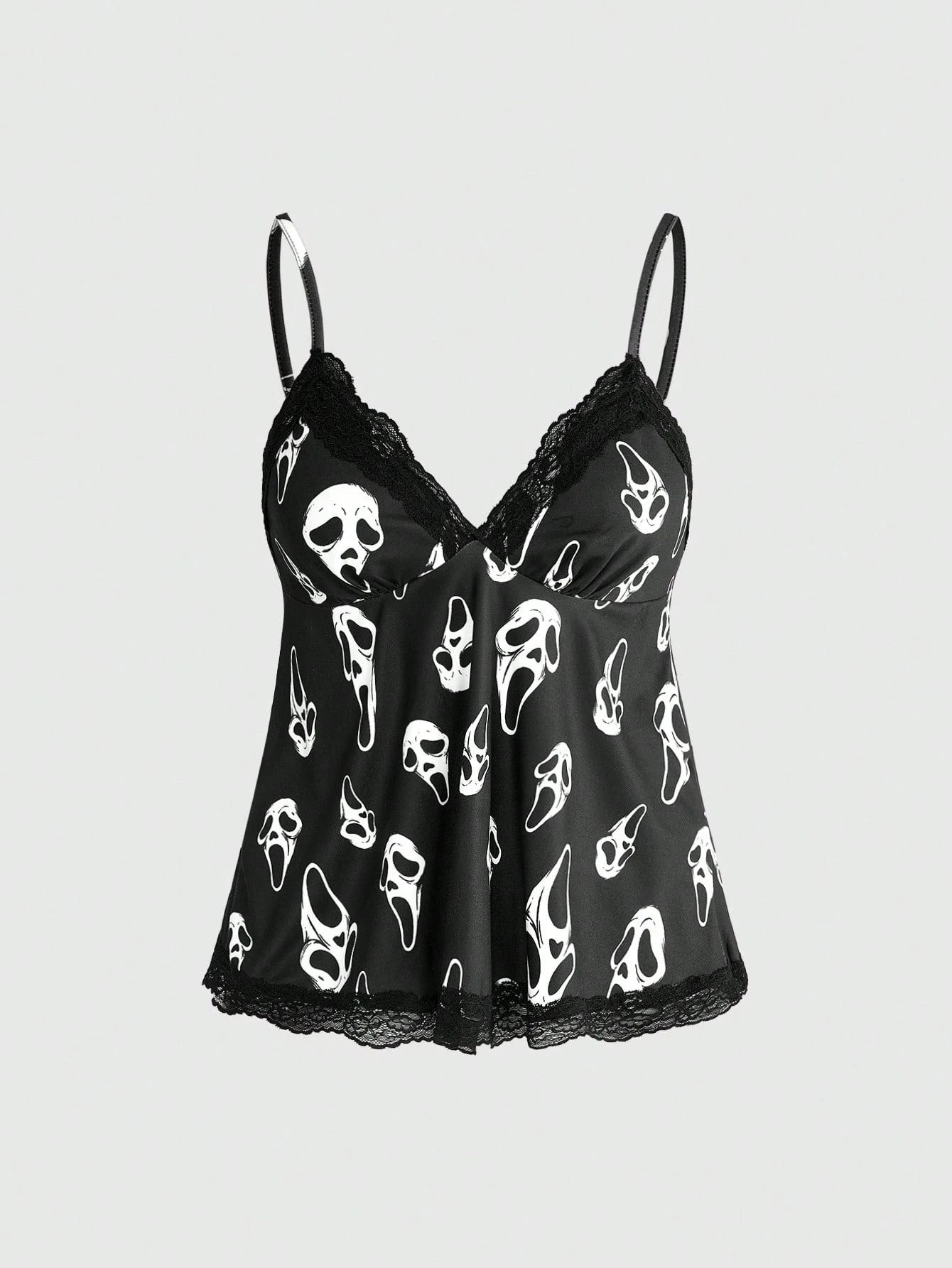 Summer Beach Outfits Gothic Skull Print Lace Patchwork A-Line Camisole