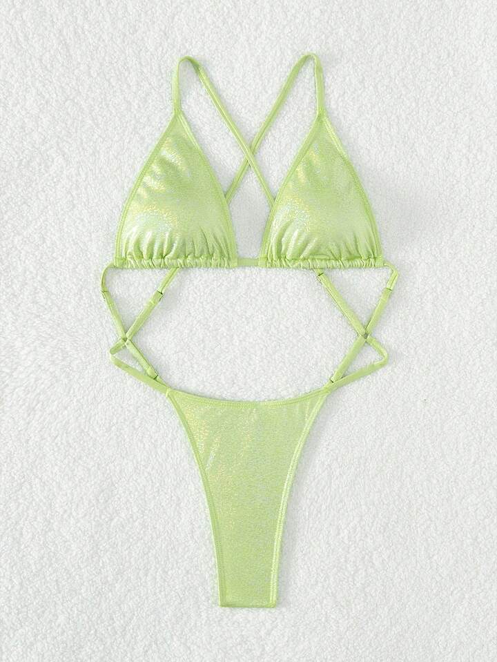 Summer Beach Solid Criss Cross Backless One Piece Swimsuit