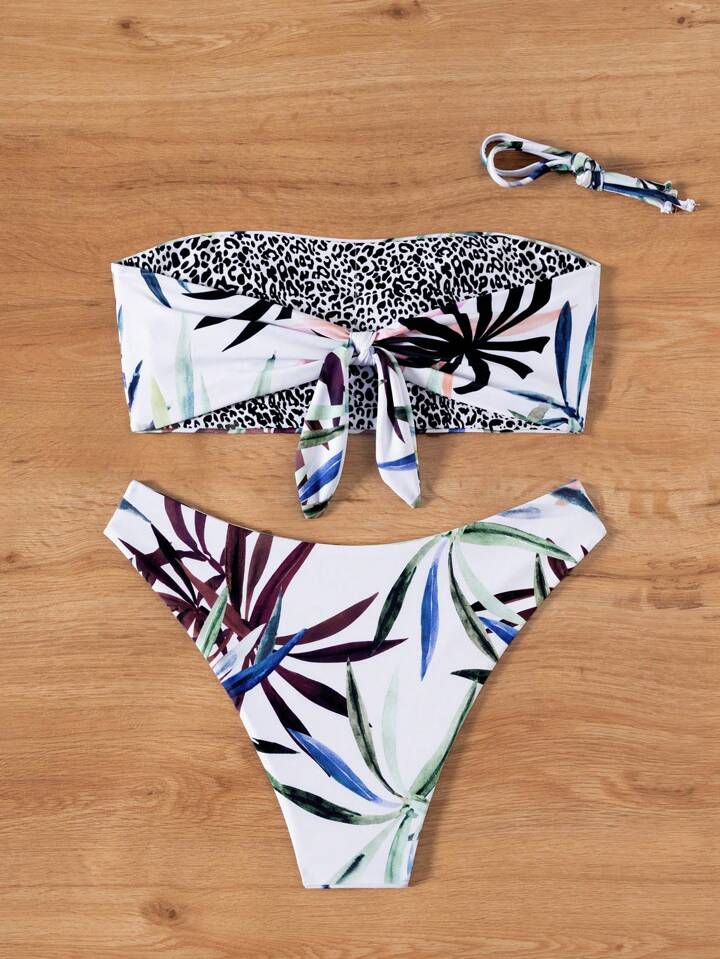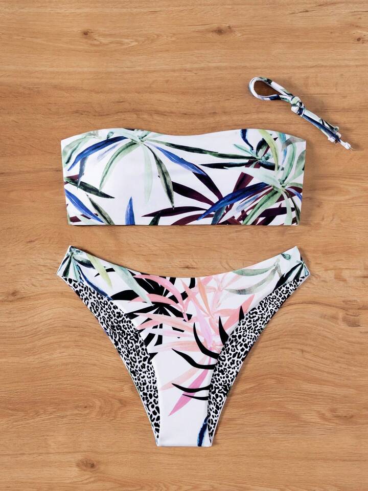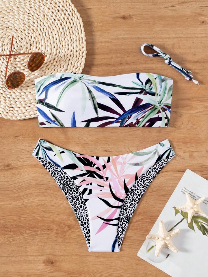 Summer Beach Tropical Bandeau With Cheeky Bikini Set