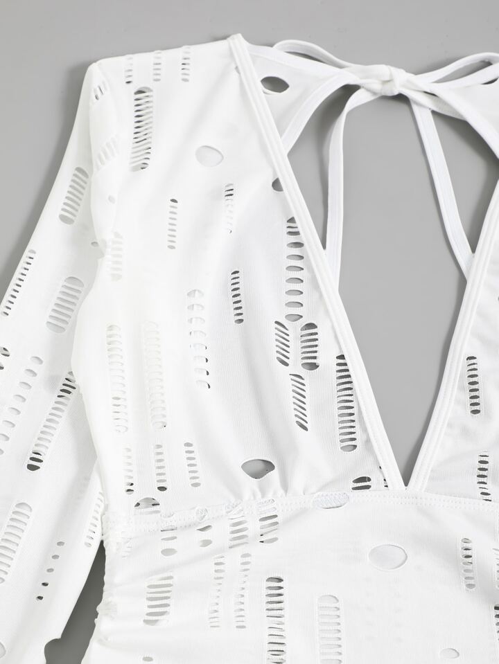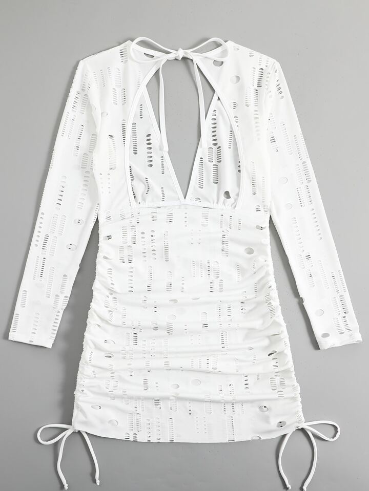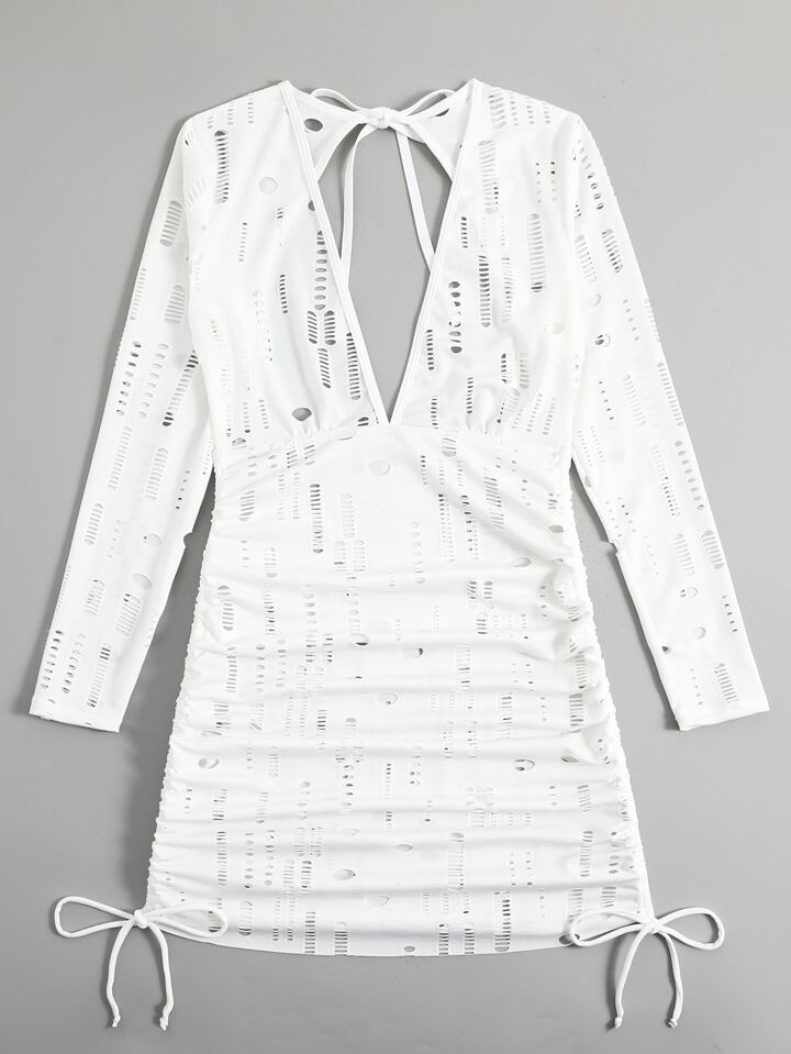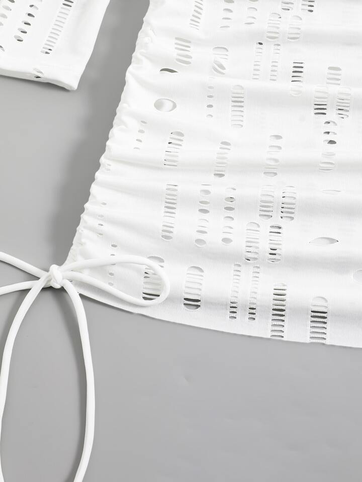 Summer Cutout Drawstring Knot Detail Cover Up