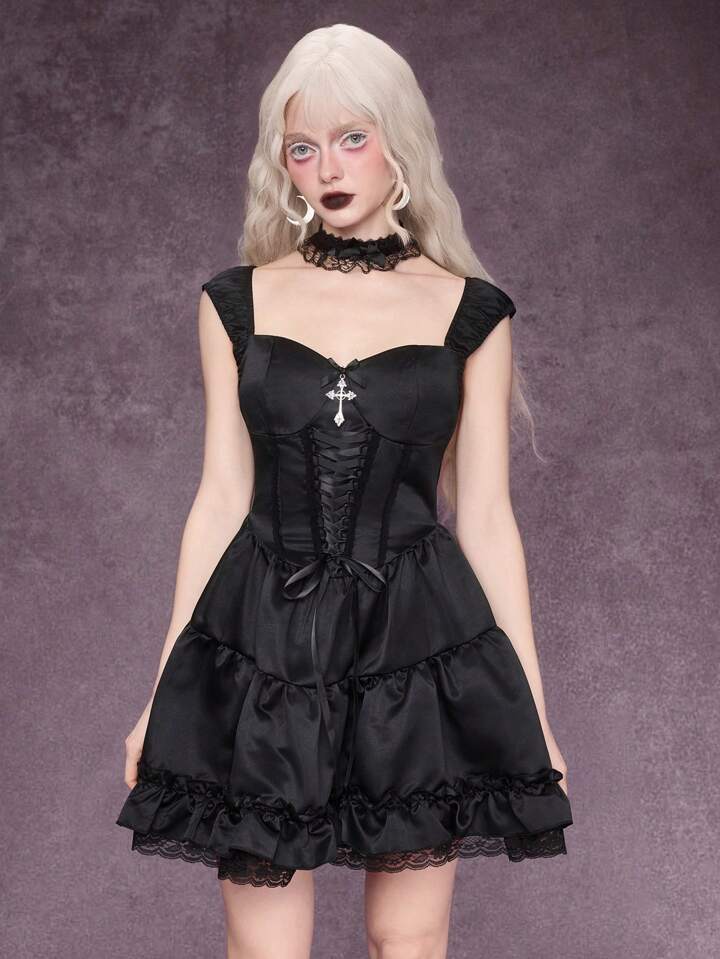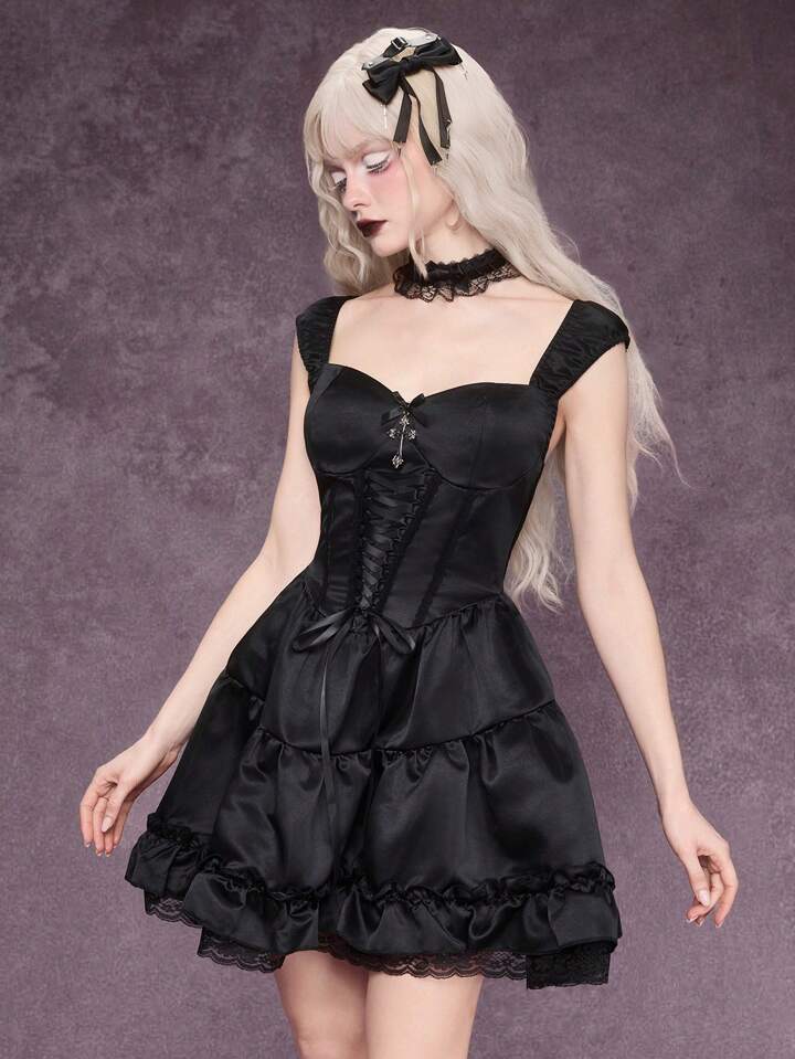 Summer Fairy Gothic Dollhouse Layered Lace Patchwork Puff Mini Dress For Women