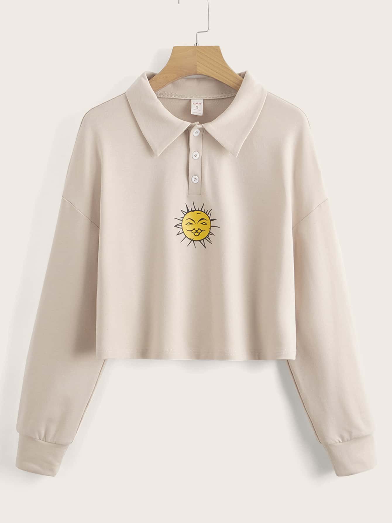 Sun Graphic Polo Neck Crop Sweatshirt