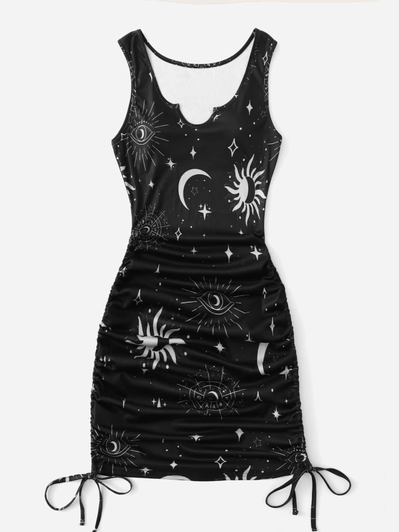 Sun & Moon Graphic Drawstring Ruched Dress