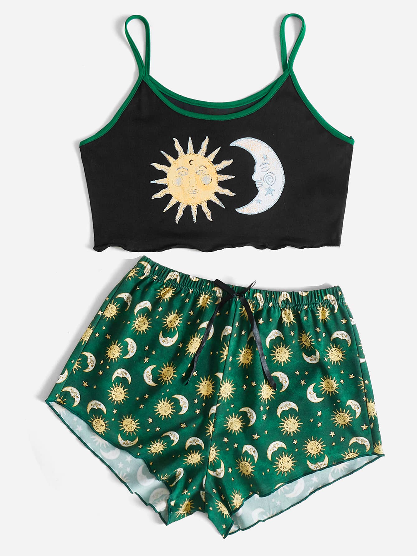 Sun & Moon Graphic Lettuce Trim PJ Set