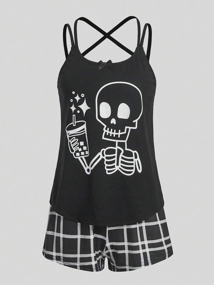 Sun Press Studio Skull Graphic Plaid PJ Set