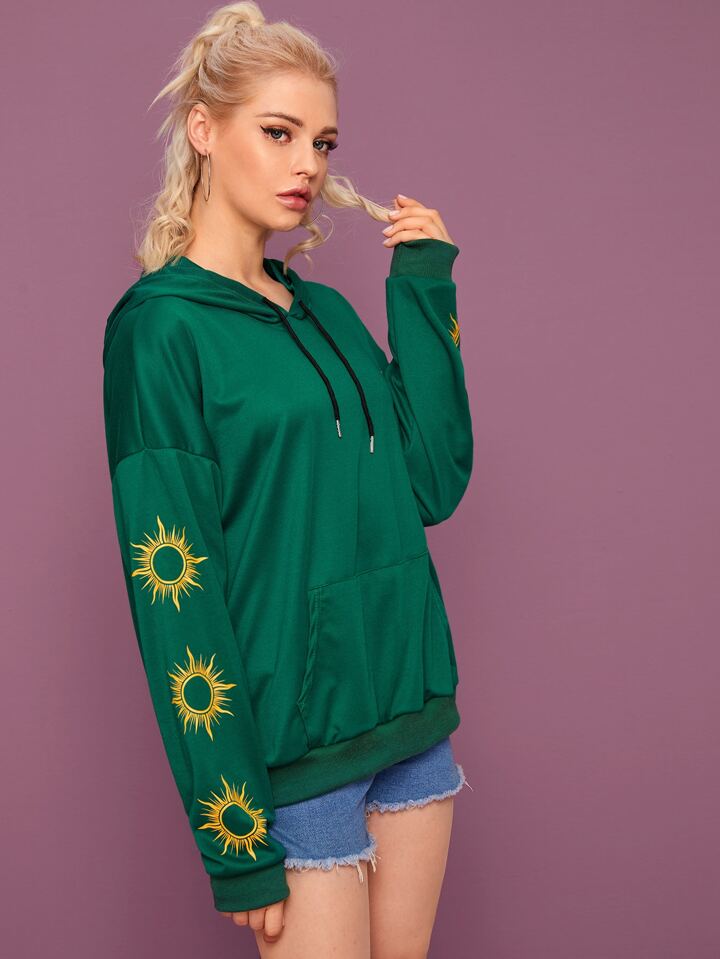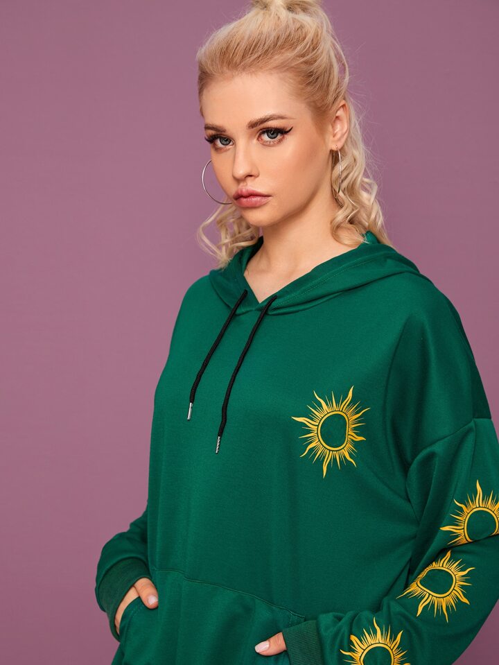Sun Print Kangaroo Pocket Drawstring Hoodie