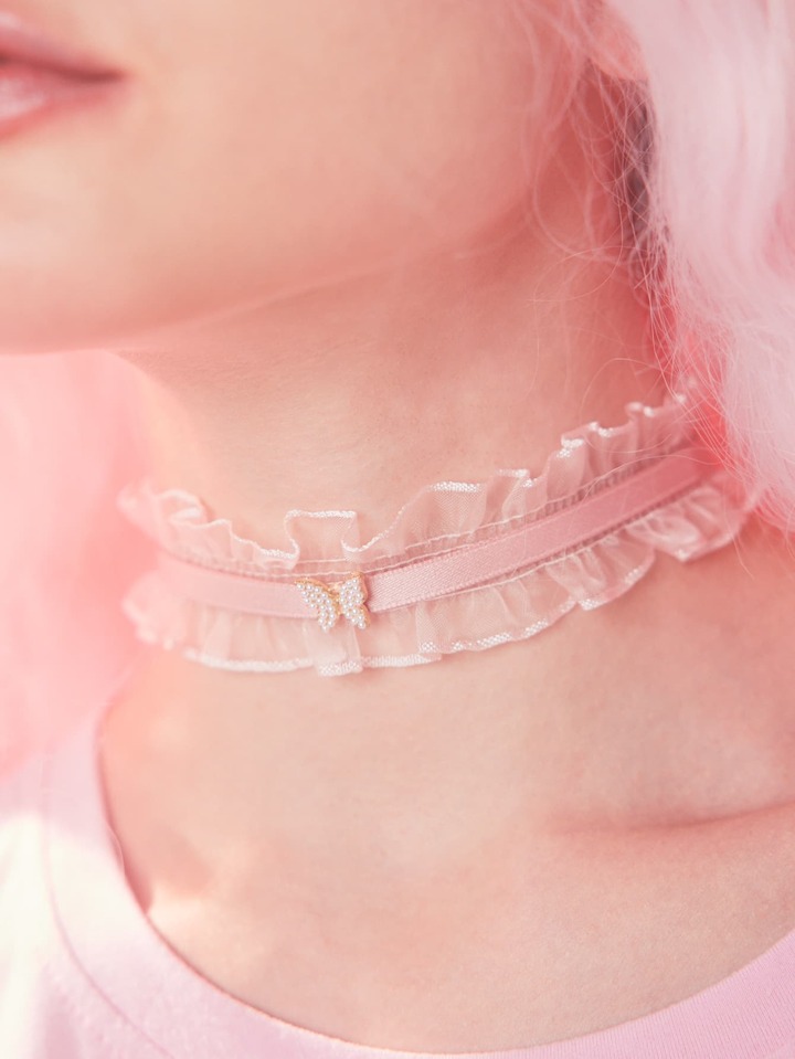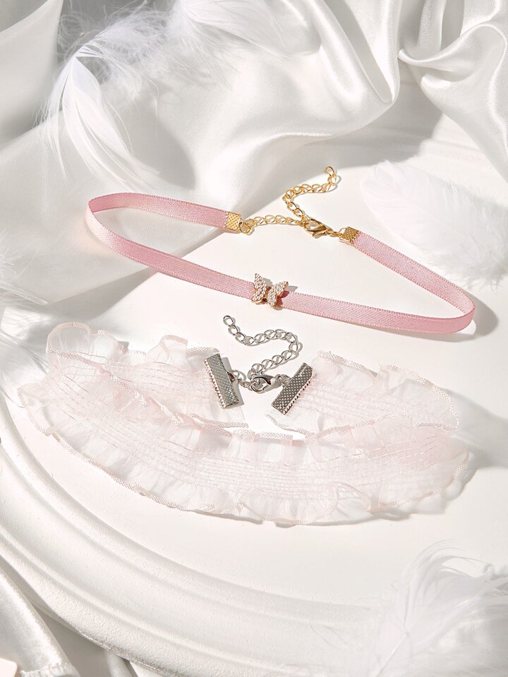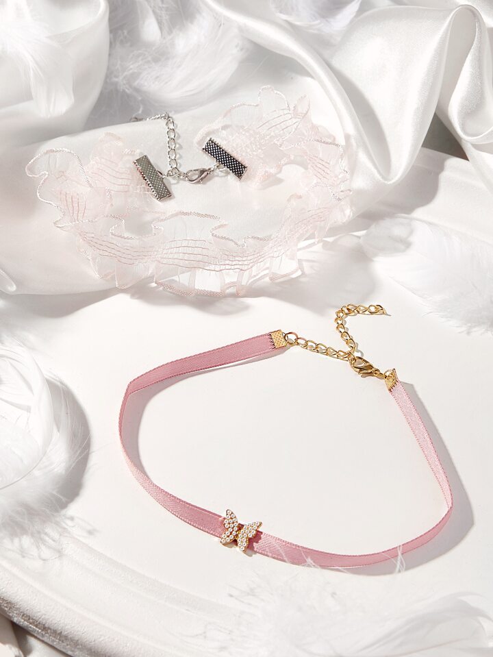 Sweetness 2pcs Faux Pearl Butterfly Decor Choker
