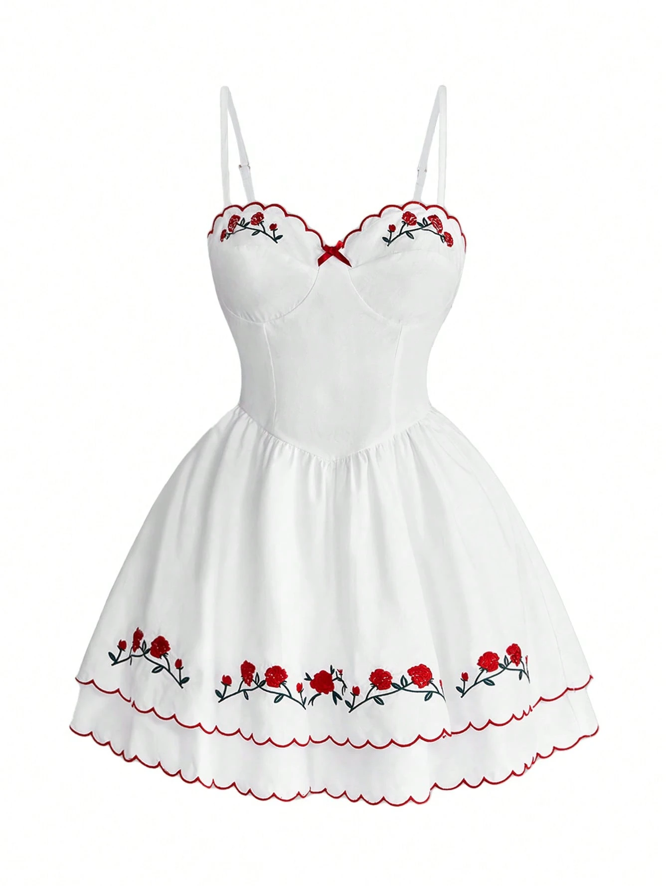 Sweetness French Vacation Rose Embroidery Sweet Mini Dress For Women