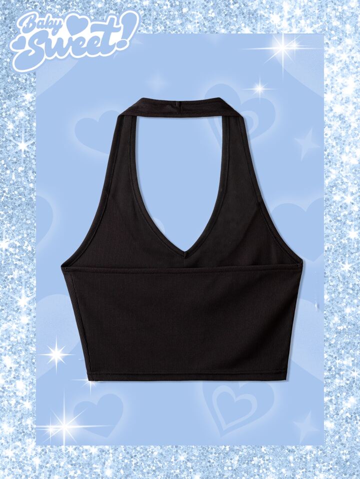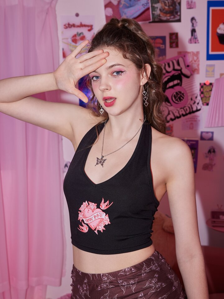 Sweetness Heart Letter & Floral Print Backless Halter Top