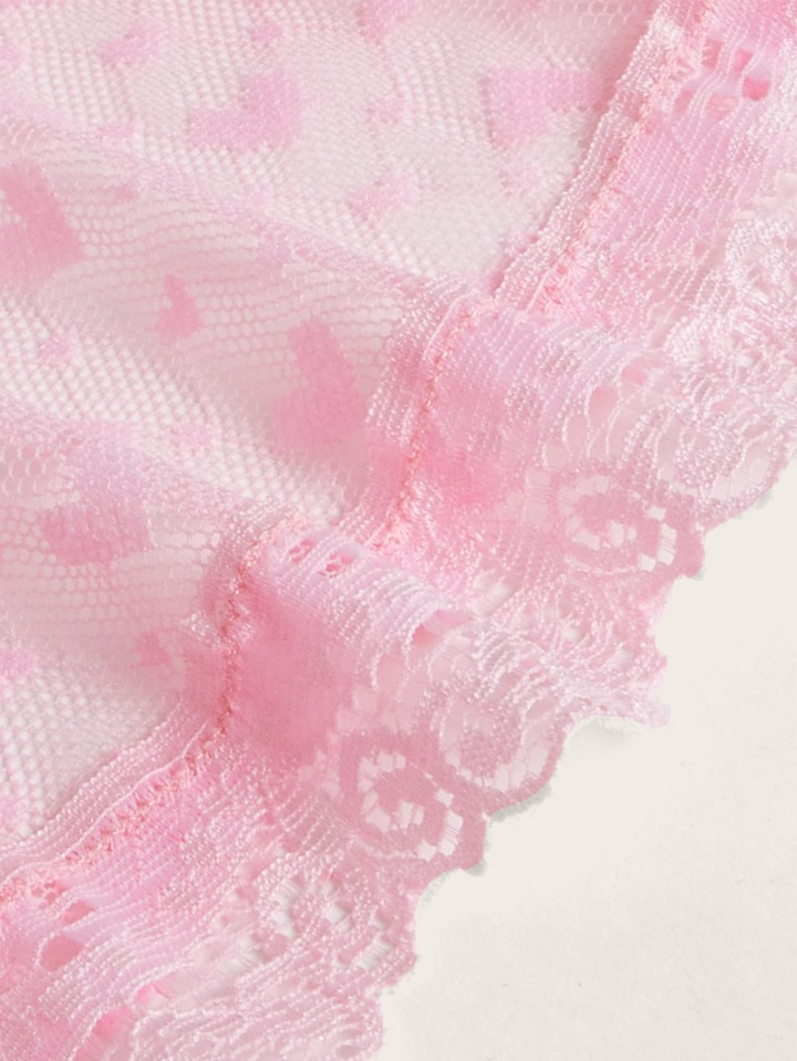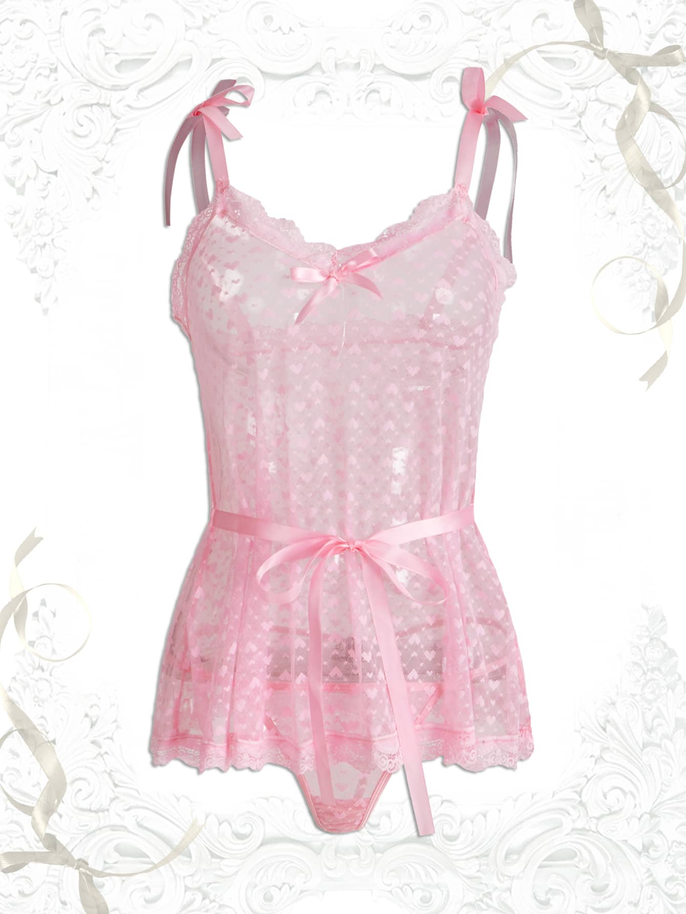 Sweetness Heart Pattern Lace Tie Shoulder Slips & Thong
