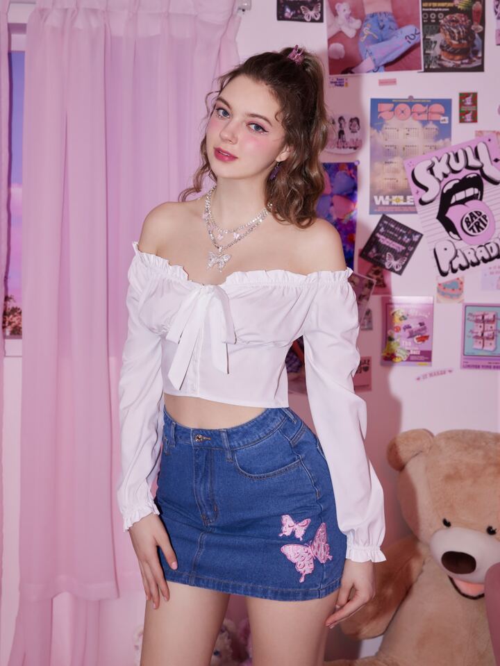 Sweetness Off Shoulder Frill Trim Blouse