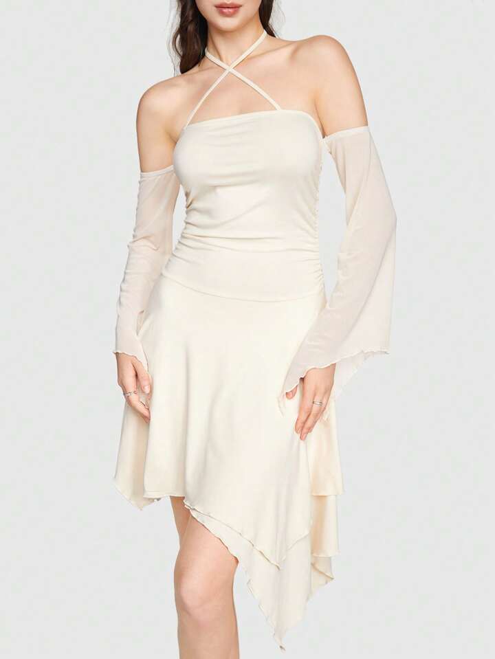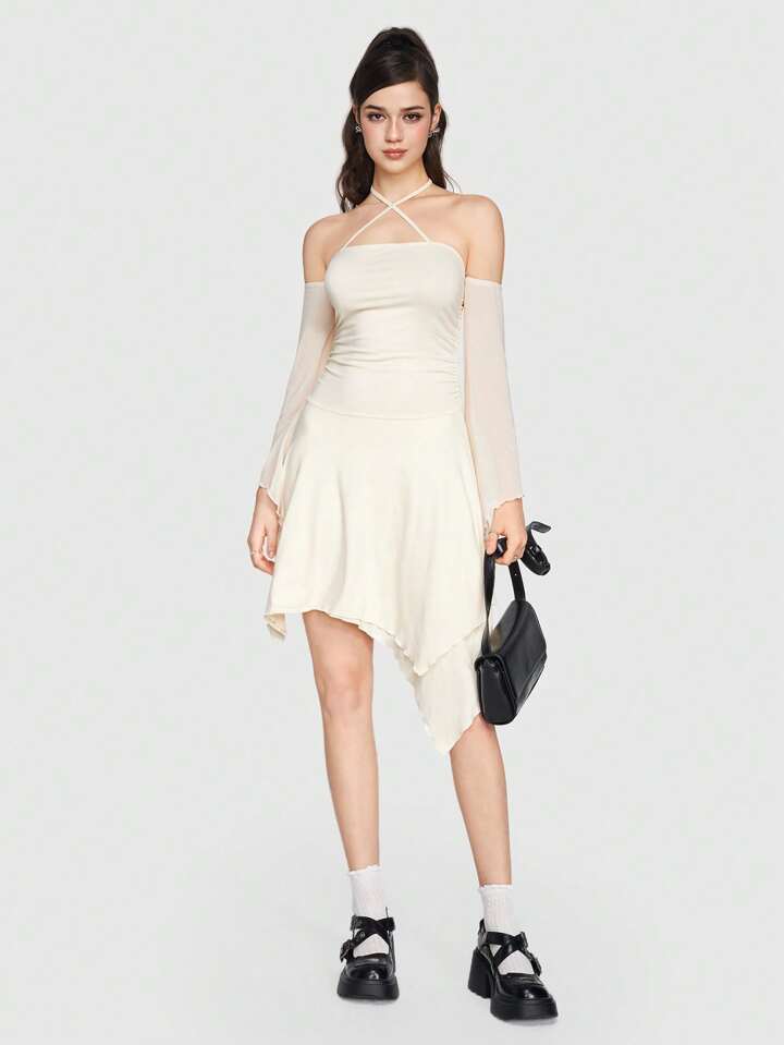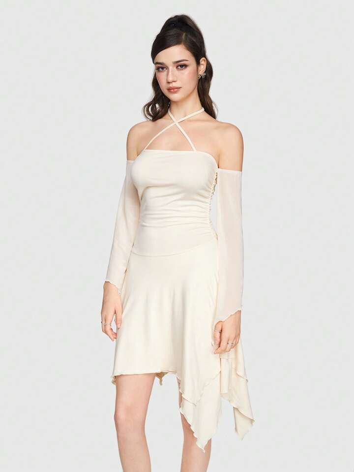 Sweetness Women's Cross Neck Ruffle Hem Dress