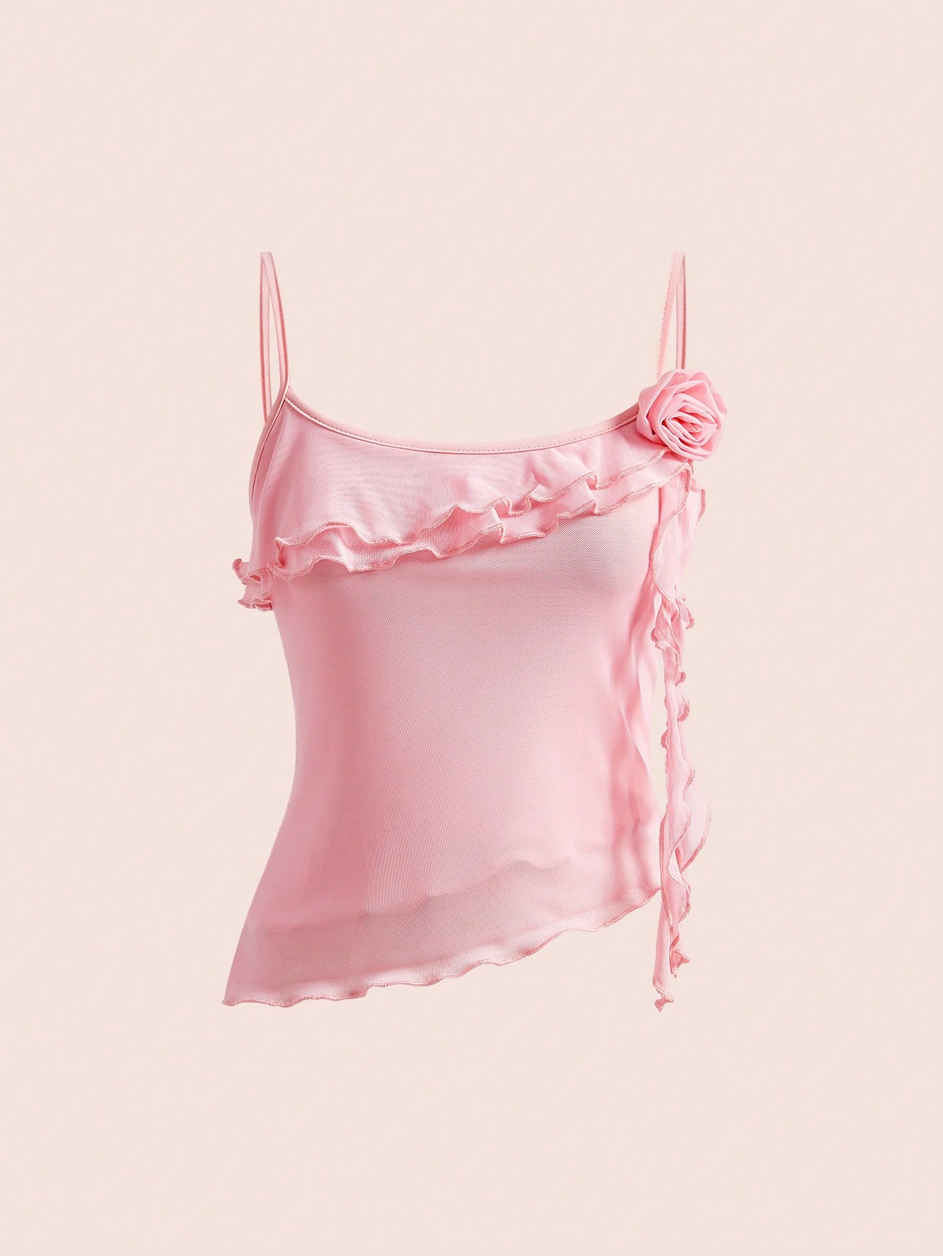 Sweetness Women's Romantic Sexy Pink Ruffle Asymmetric Hem Camisole