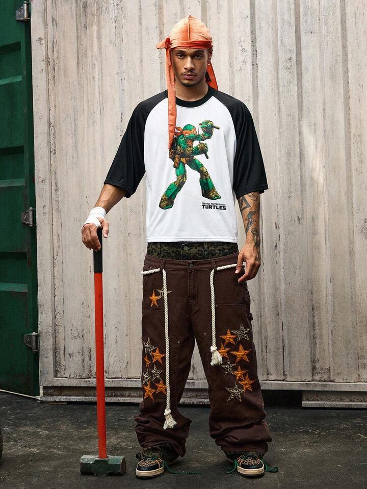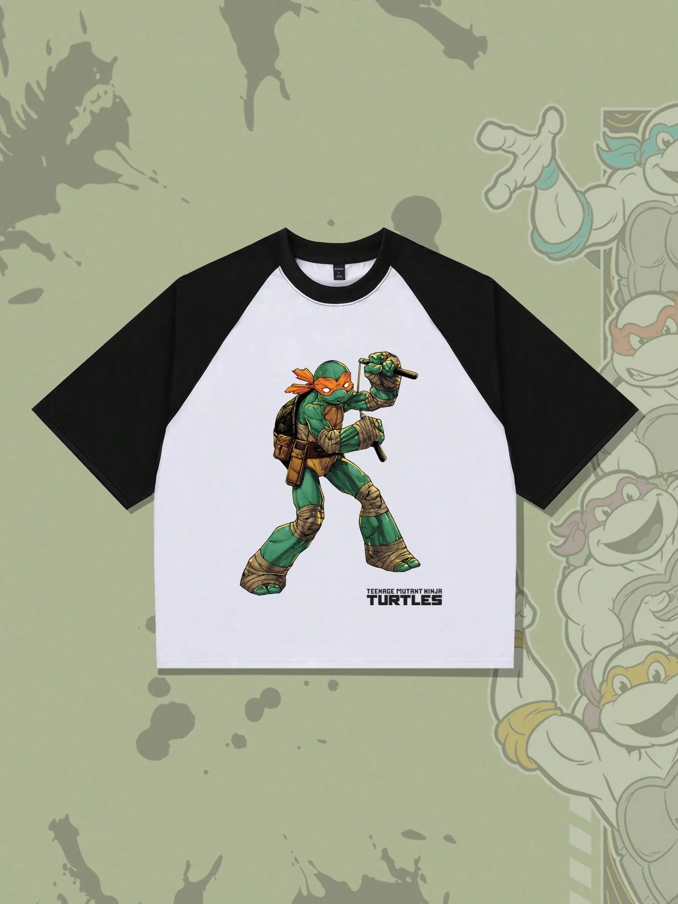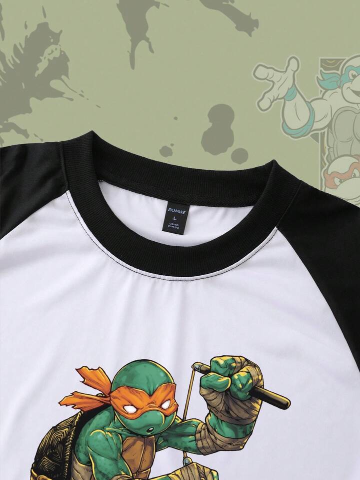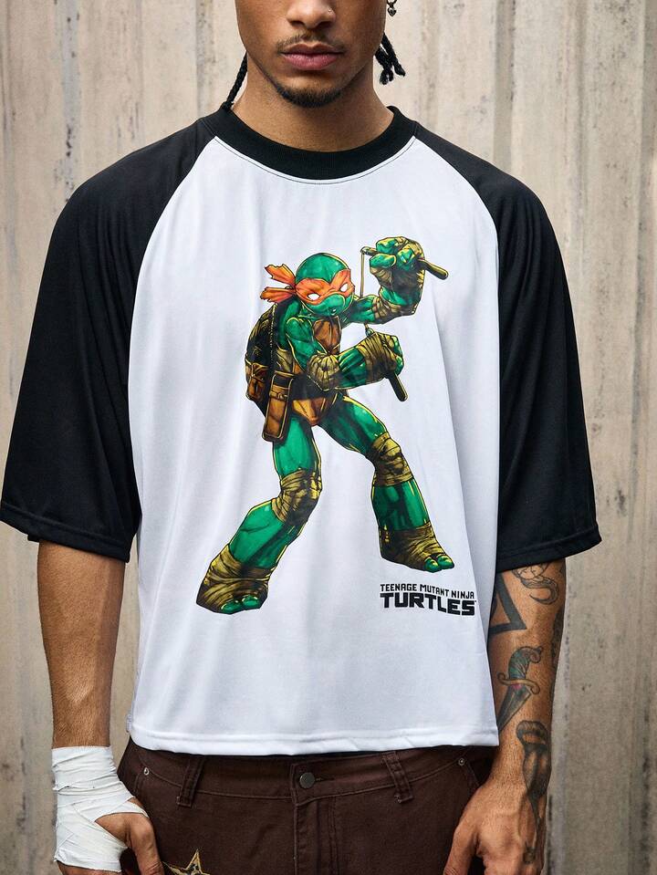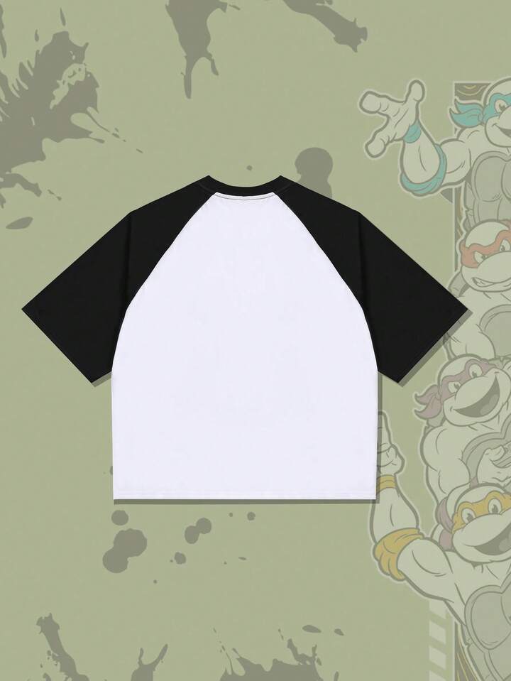 TEENAGE MUTANT NINJA TURTLES X ROMWE Men's Street Style Turtle Print Contrast Raglan Sleeve T-Shirt