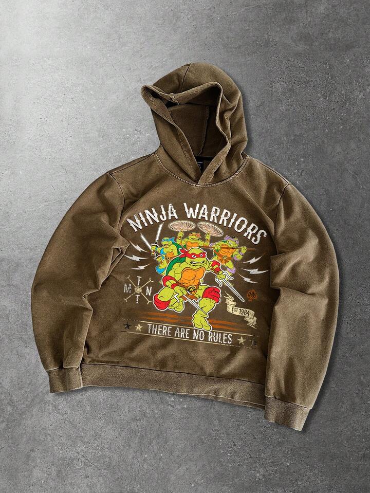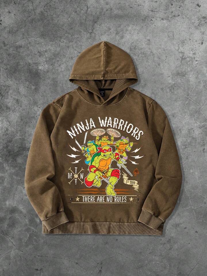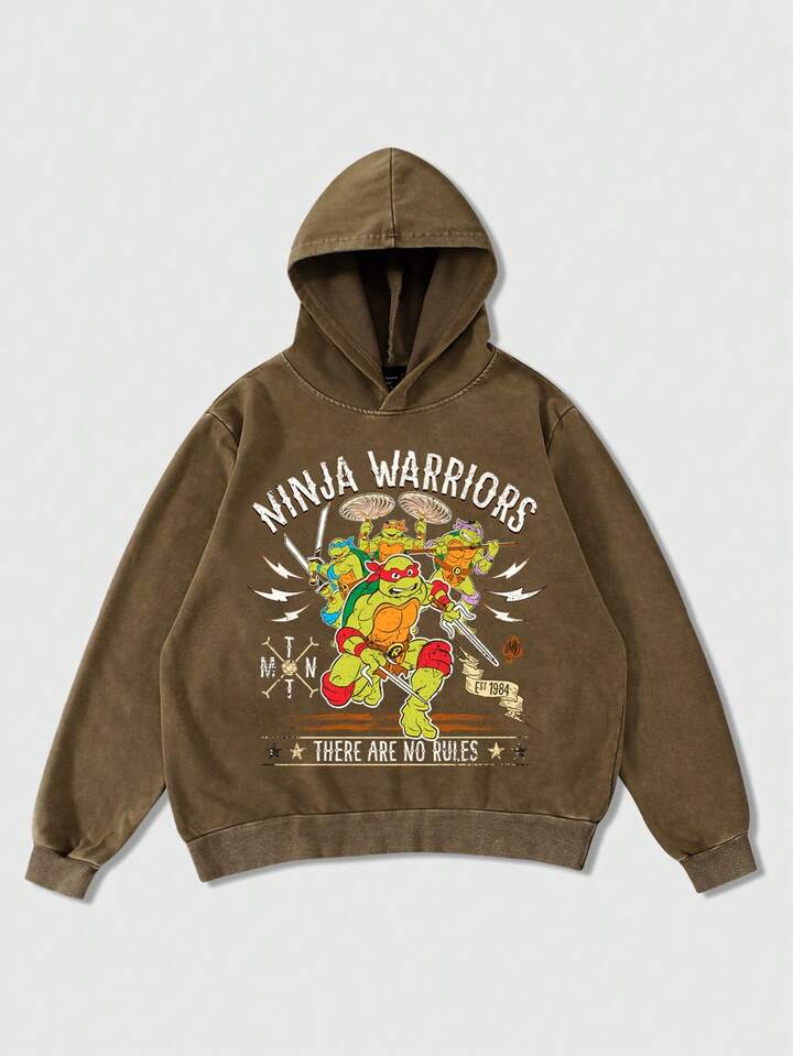 TEENAGE MUTANT NINJA TURTLES X ROMWE Men's Turtle & Letter Graphic Fleece Hoodie, Autumn