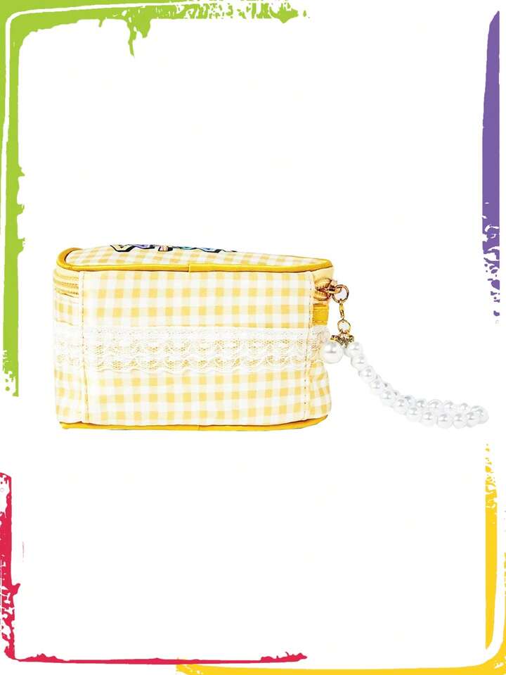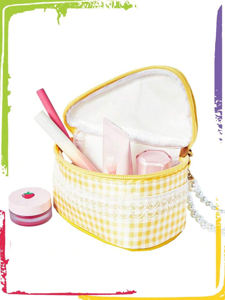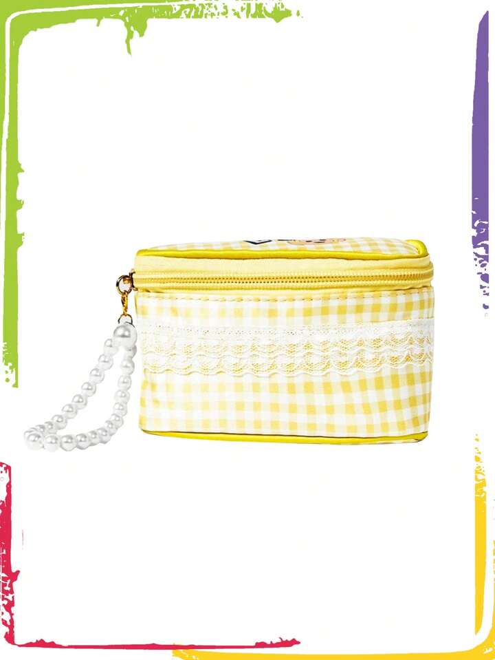 Teletubbies X ROMWE Letter Graphic Fashion Faux Pearl Bow Cake Shaped Makeup Bag, Girly Portable Mini Cosmetic Pouch