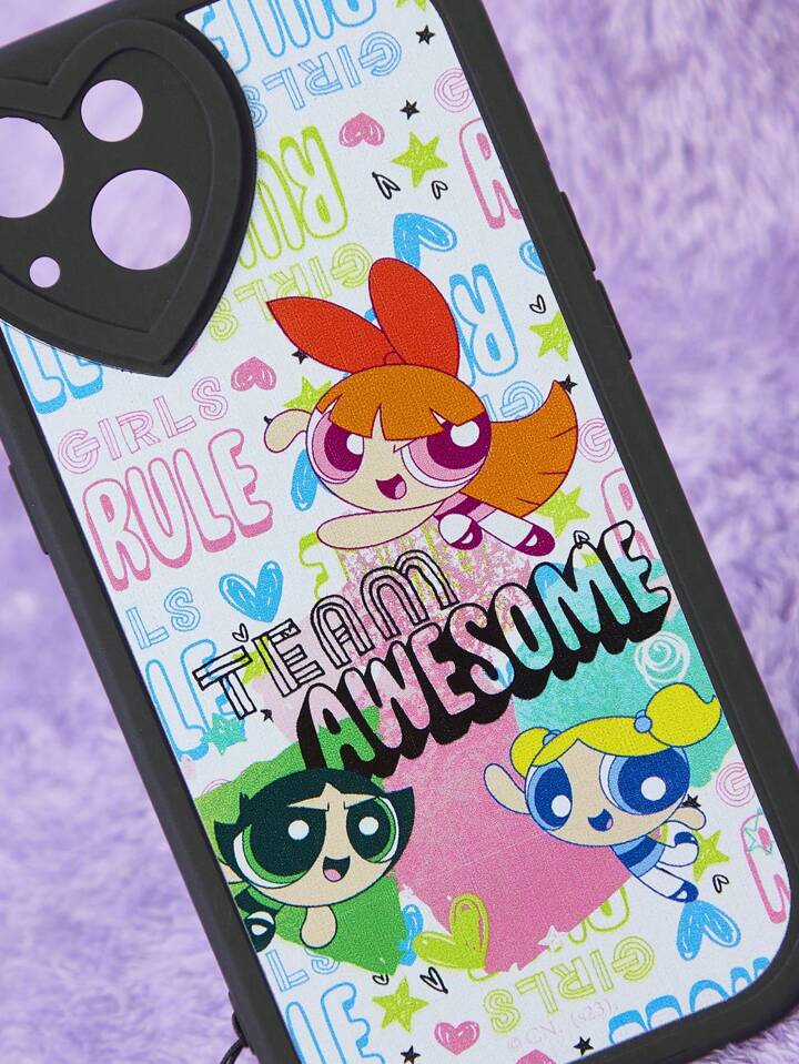 The Powerpuff Girls | ROMWE 1pc Letter Cartoon Graphic TPU Phone Case With Lanyard Compatible With IPhone