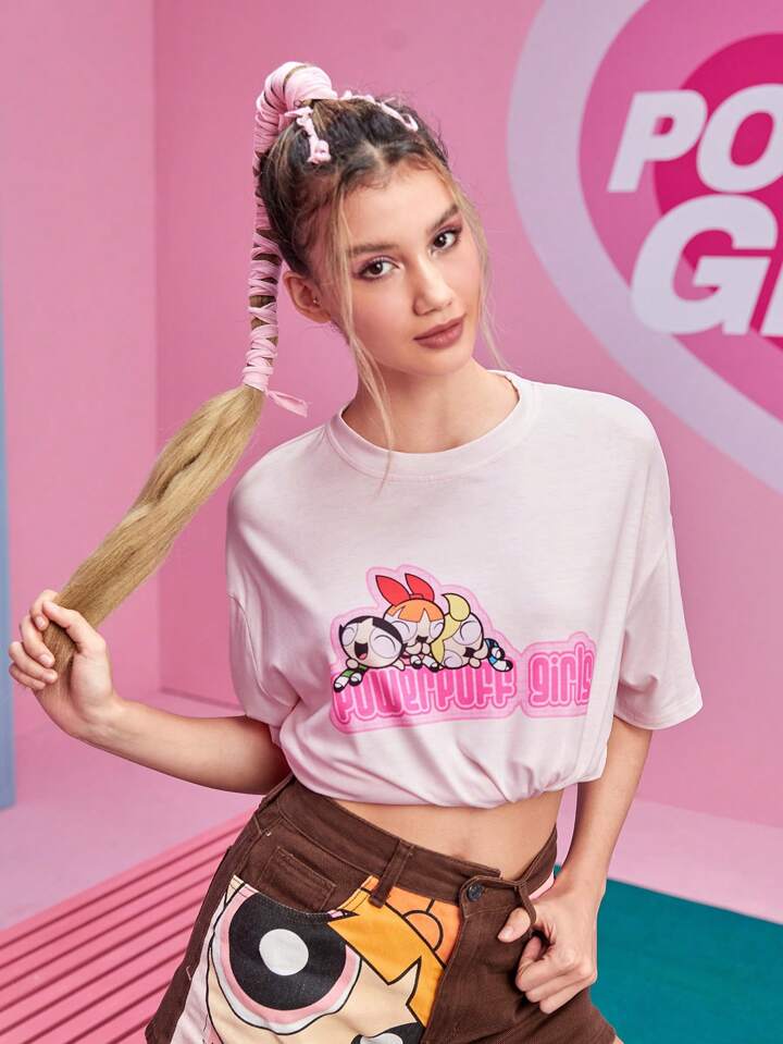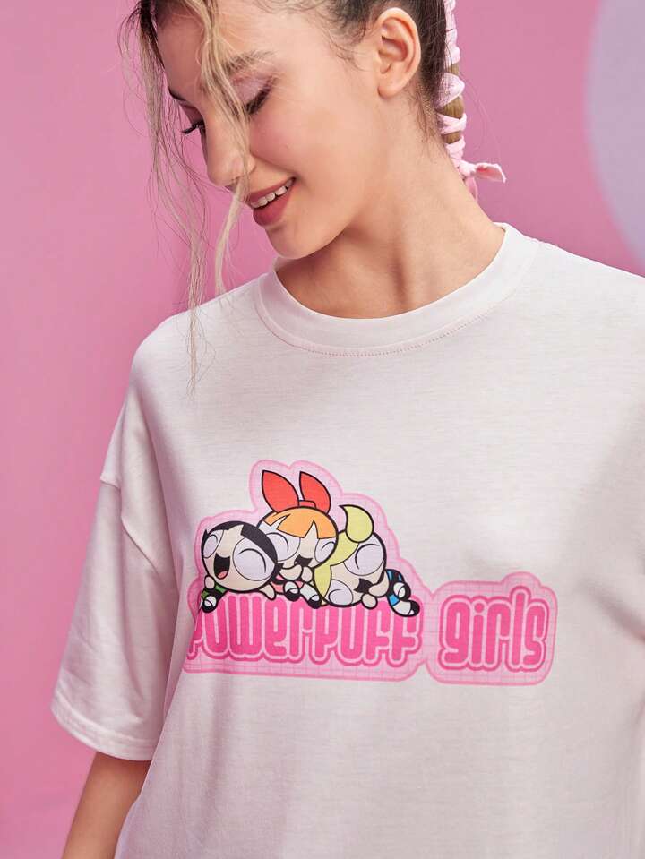 The Powerpuff Girls | ROMWE Cartoon Graphic Drop Shoulder Oversized Tee