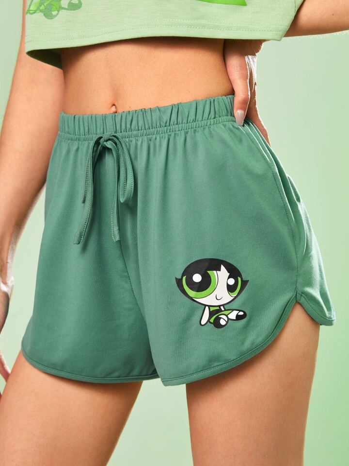 The Powerpuff Girls | ROMWE Cartoon Graphic Tie Front Shorts