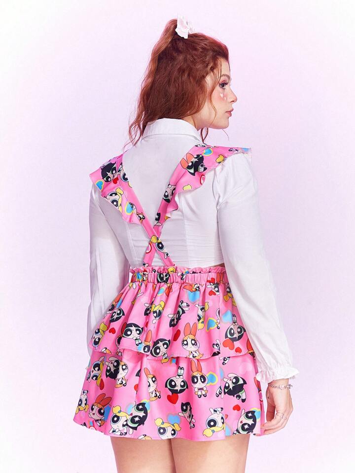 The Powerpuff Girls | ROMWE Plus Cartoon Graphic Ruffle Trim Pinafore Skirt Without Shirt