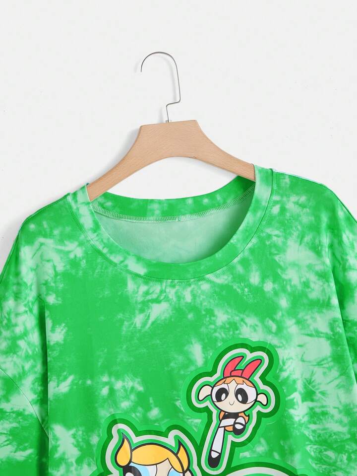 The Powerpuff Girls | ROMWE Plus Tie Dye Cartoon Graphic Drop Shoulder Tee